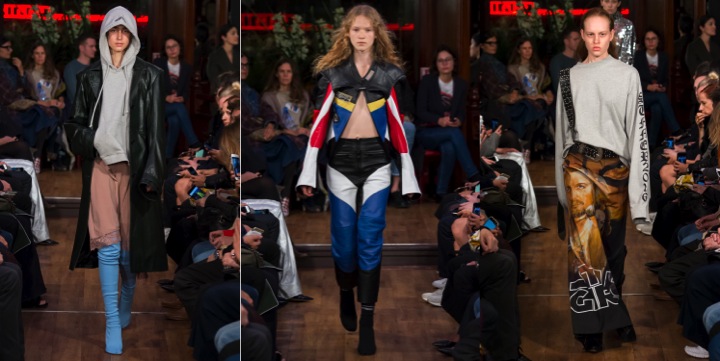 Glittering with over 250,000 mirrored sequins, the all-pink venue of Gucci spring-summer 2017 collection reminded a high-profile striptease club. The released mist reassembled cigarette smoke, while the velvet stools and sofas suggested one thing – Alessandro Michele is not a step closer to such thing as “minimalism” this season. Indeed, the collection had something to do with trashy chic – just have a look at the extremely platformed footwear. “Prostitute in Venice used to wear these“, the designer said backstage, while discussing his references and inspirations. Red latex tights, worn casually with knitted skirts, screamed “sex”, too. Alessandro’s mind is not that innocent, after all.