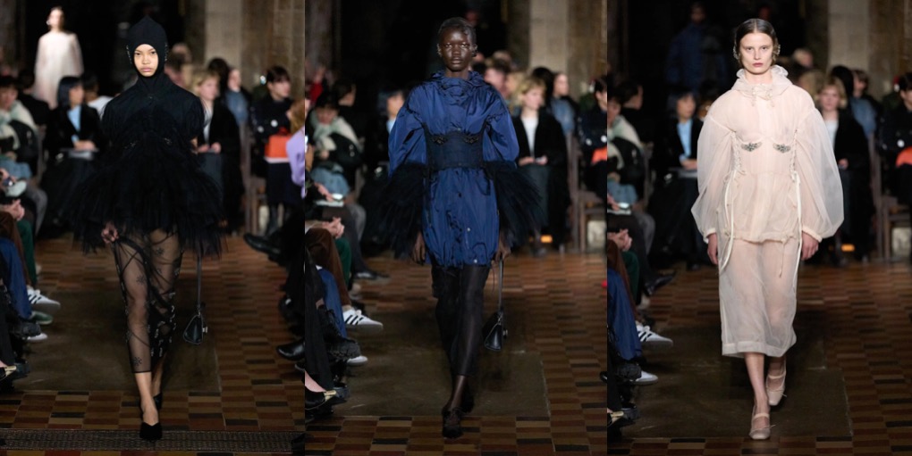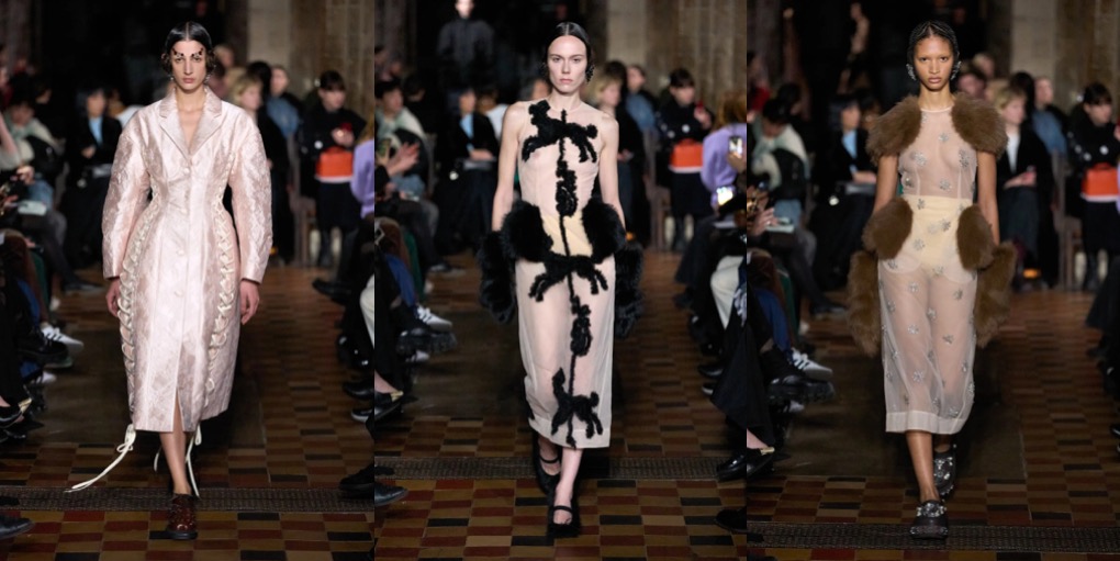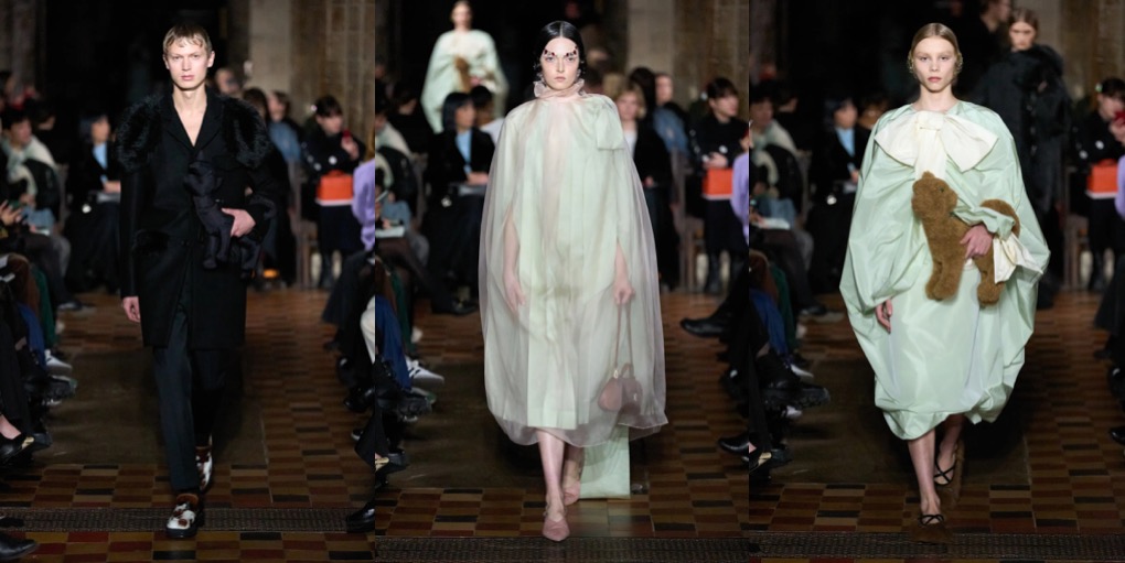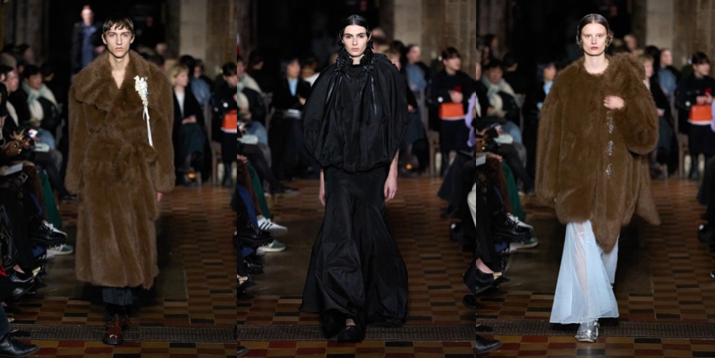 Daniel Lee is finding his ground at Burberry. Well, it’s high-time: the sales don’t look good at the British brand, and the plans of making Burberry a high-class-luxury player seem to be too ambitious. But what Lee presented under the tent in Victoria Park yesterday was quite convincing. To the tune of Amy Winehouse’s biggest hits, London’s O.G. models – Agyness Deyn, Lily Donaldson, Karen Elson, Lily Cole, Nomi Campbell – marched in desirably-looking outerwear, no-nonsense knitwear and plaid flannels. Maya Wigram – Phoebe Philo’s daughter! – closed the show. This gesture felt like a blessing from the fellow London-based designer who schooled Lee at her Céline studio. The styling of the show was persuasive as well: maxi-skirts styled with short varsity jackets, slouchy shearling coats mixed with super-oversized pants, and of course, a range of revisited moleskin trenches in shades of earthy greens and browns. Echoes of Christopher Bailey-era Burberry were heard and seen all around. All this certainly felt good to watch, but will it actually lure the clients to invest in Burberry just as they did in the early 2010s? Time will tell.