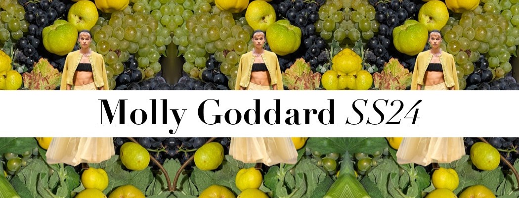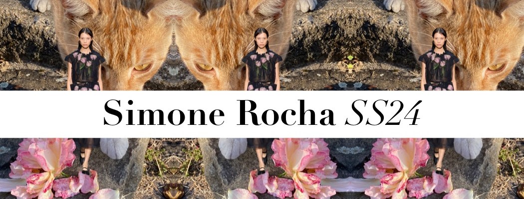 Simone Rocha staged her spring-summer 2024 show in the rehearsal space at the English National Ballet. “I love the rise and fall of doing a show,” she said. “Sometimes it’s a big spectacle, sometimes it really brings people in.” By shows, she also had wedding ceremonies on her mind. The cake-inspired tiers of appliqué on white tulle dresses and the sound of silver “wedding” bells tinkling on slippers, sleeves and bags. “It’s almost fragmented,” the designer said of Frederic Sanchez’s music for the show. “It’s that disturbed feeling, all the emotions of a rehearsal… the nerves!” Despite the sense of tension Rocha set out to create, there’s little chance of a bride wearing one of these dresses getting cold feet the night before. The show’s highlight: instead of a bride holding a bouquet, fresh roses were bunched between layers of sheer tulle, and fabric versions were manipulated into dresses and jackets. Models carried single stems fashioned from cotton or pearls, and bare legs were decorated with red rose tattoos. As a motif, it was equal parts enchanting and fragrant.