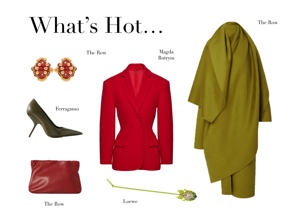 What’s Hot (21.10.24) October 21, 2024October 19, 2024 | Design & Culture by Ed Magda Butrym Oversized Wool-blend Blazer Ferragamo Eva Leather Pumps The Row Bourse Clutch in Nappa Leather The Row Denver Oversized Belted Double-breasted Cotton-gabardine Trench Coat Bottega Veneta Resin And Gold-tone Earrings