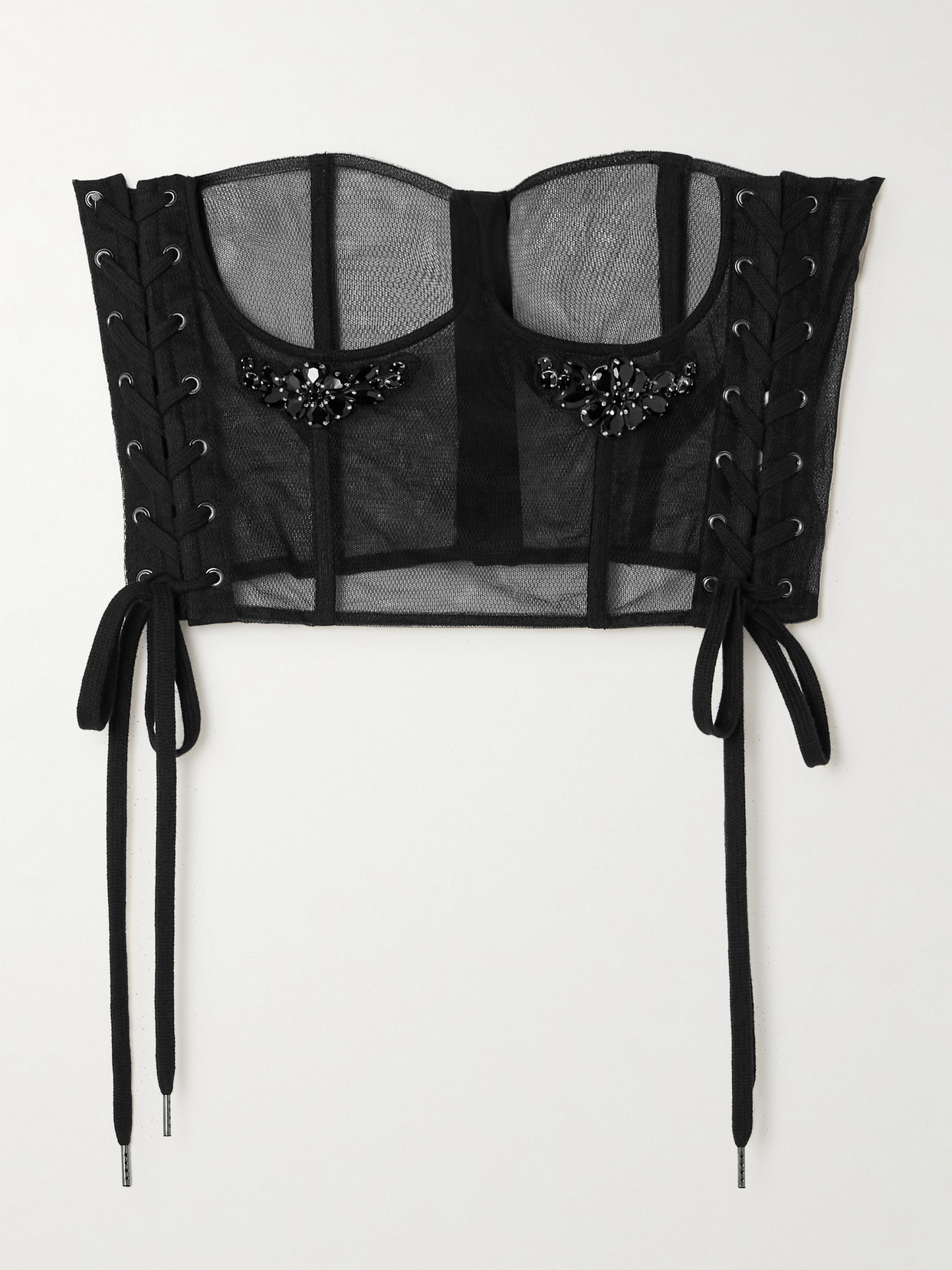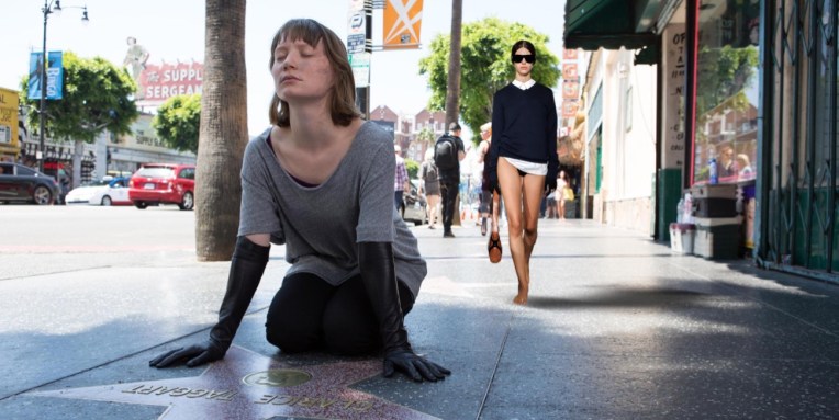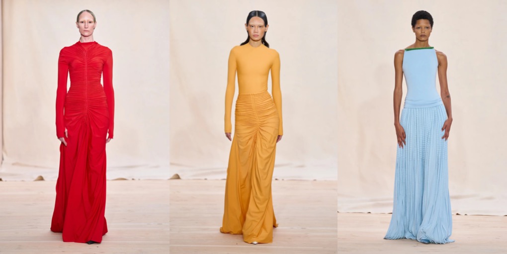 Rather than think of a fashion presentation solely as a forum for presenting new designs, she sought to evaluate its merit as a conceptual and artistic medium. Her decision to present what she called “a styled show rather than a fashion show” was an exercise in distancing herself from a sense of obligation to create producible garments. Working alongside stylist Taylor Thoroski, looks leaned into Mark’s familiar style vernacular, drawing upon her own dress habits. “Something I’ve learned over the years is that the things that I put down the runway are stronger, in my opinion, when they’re in line with me,” she said. “I’ve been very into not having pants on in the past. So we were like, ‘OK, let’s keep going there.’ And I’ve been wearing really simple jeans,” she says, pointing down to a slim-fit H&M pair she was wearing. And that’s so refreshing to hear in 2024.