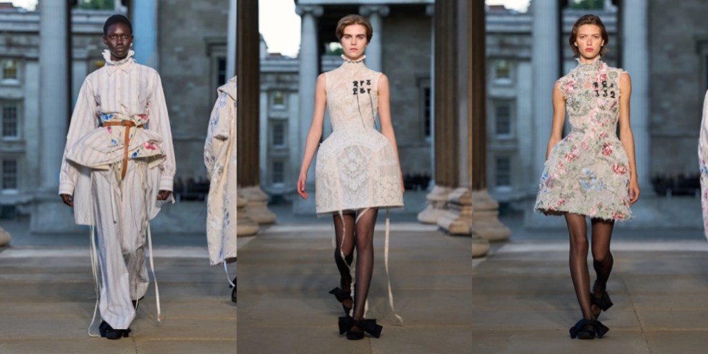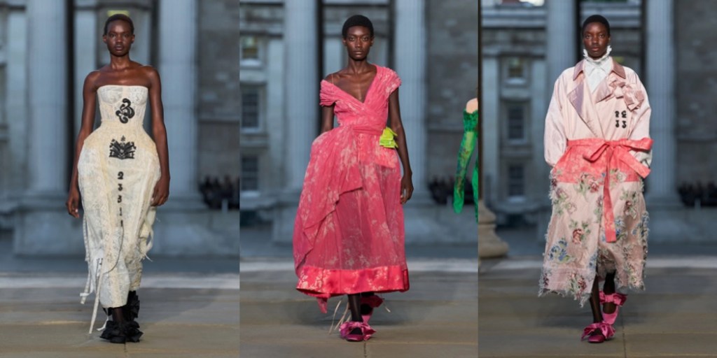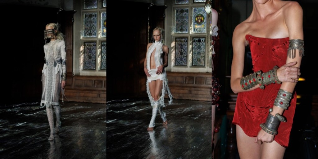 Dilara Findikoglu titled her spring collection “Cage of Innocence.”It’s about giving freedom to my ancestors and to anyone who never had freedom. I feel like women have been kept in cages of innocence and purity, told they have to be clean and embody virginity—all that kind of stuff. But today, we step out of that cage.” She delivered on that promise. The models on her runway moved like natural forces – unleashed, untamed, extreme, and absolutely liberated.