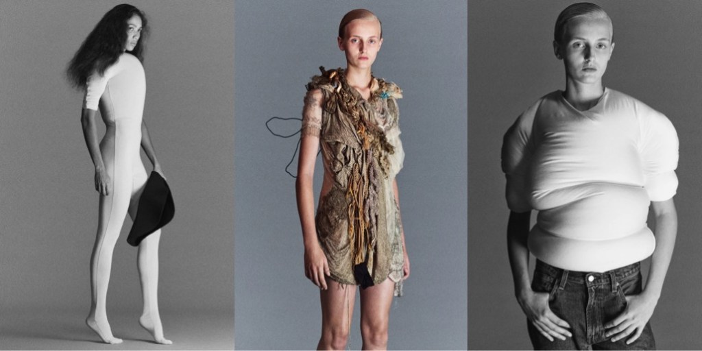 Devastatingly beautiful” is perhaps the only way to describe Ponte, Harry Pontefract’s brainchild that relentlessly pushes the boundaries of the body and proportion. His lookbooks – photographed by Mark Kean – read like portraits of characters: often oneiric, sometimes distant, at times even unsettling.
