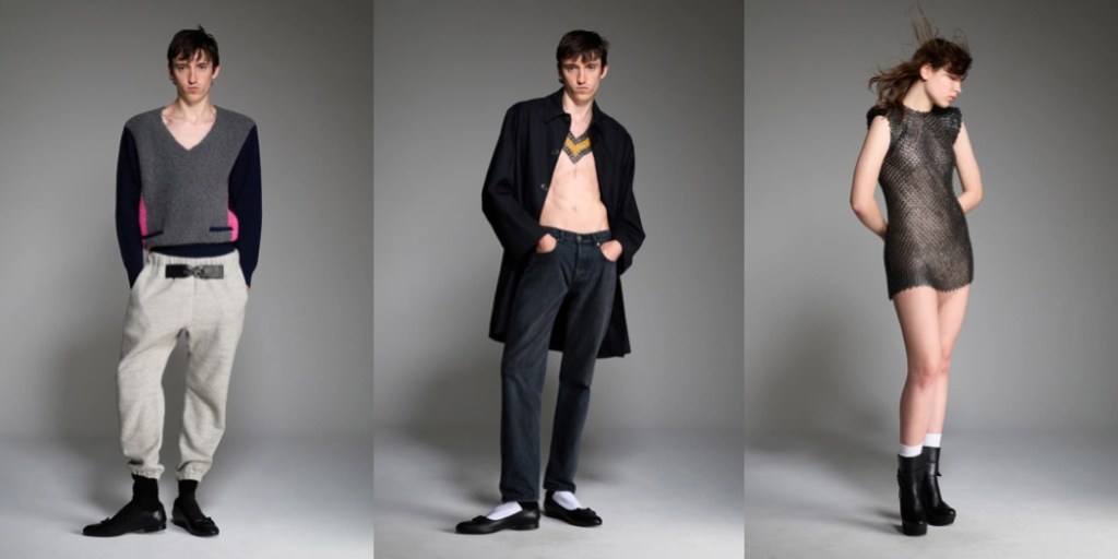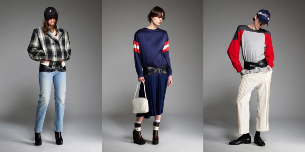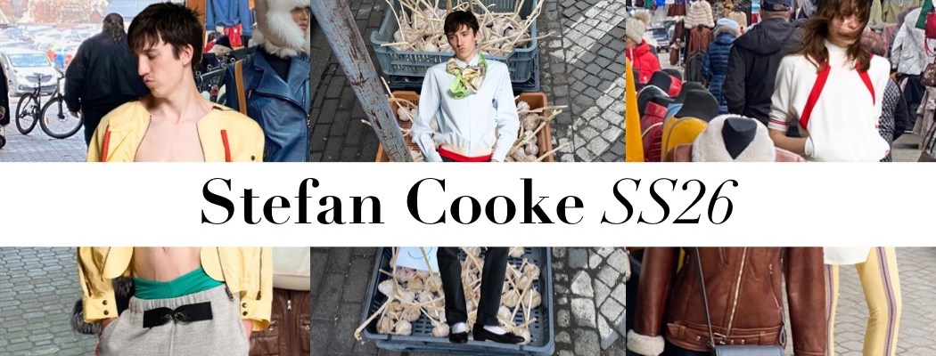 Stefan Cooke and his partner, Jake Burt, have a way of uncovering the contemporary within the vintage. For spring–summer 2026, they merged references to New Wave with echoes of Princess Diana’s personal style, creating looks that feel sensual, clubby, and undeniably cool. A centerpiece of their collection was a replica of an American flying jacket they discovered on one of their trips to secondhand and army-surplus stores. In their hands, the jacket appears in an unexpected canary yellow, reimagined with updated proportions and a flamboyant flair. When worn with a hip-length sweater and a knife-pleated skirt, the look feels familiar yet intriguingly different. The same applies to the reworked grey sweatpants with a leather buckle strap (very Lederhosen), and the sweatshirt fitted with a sewn-in cummerbund and finished with a very British silk foulard. As for accessories, the London-based label has us covered with a pair of utterly charming opera shoes topped with a bow. Not a want – a need.