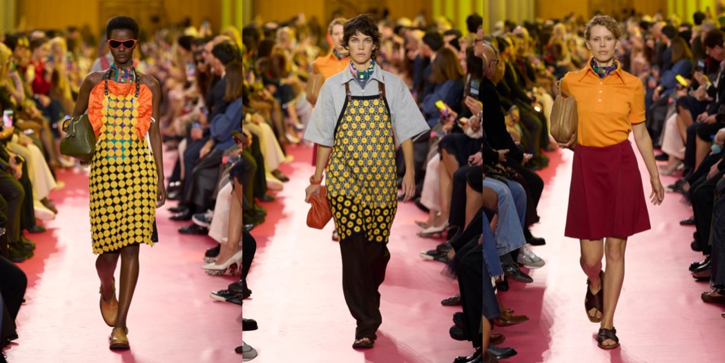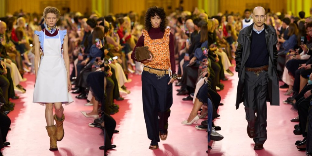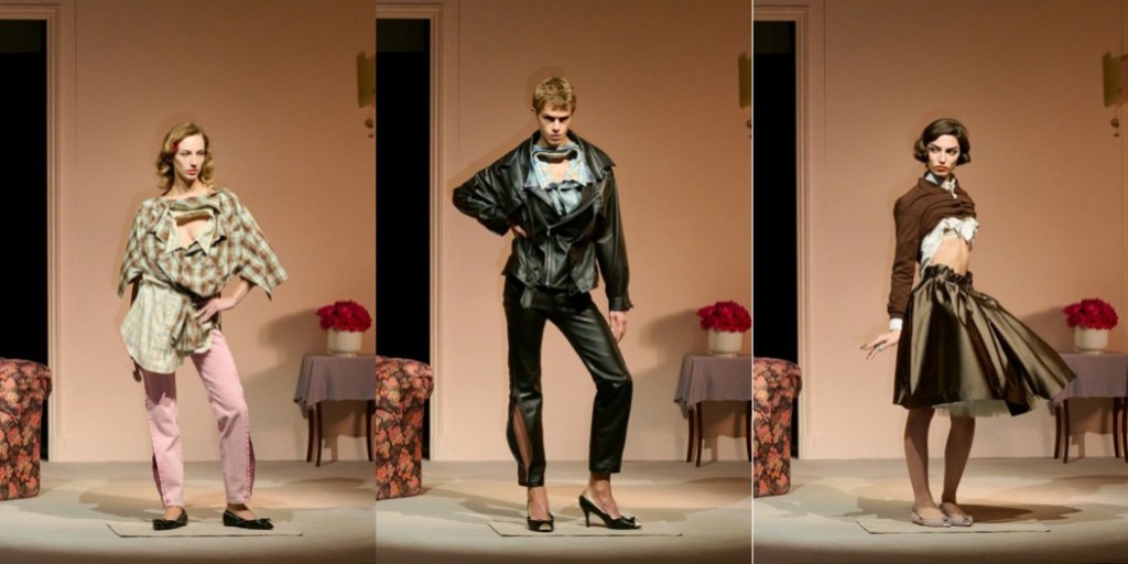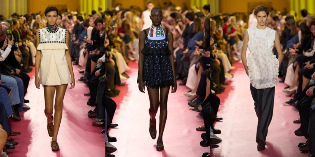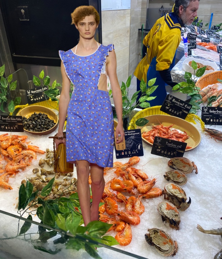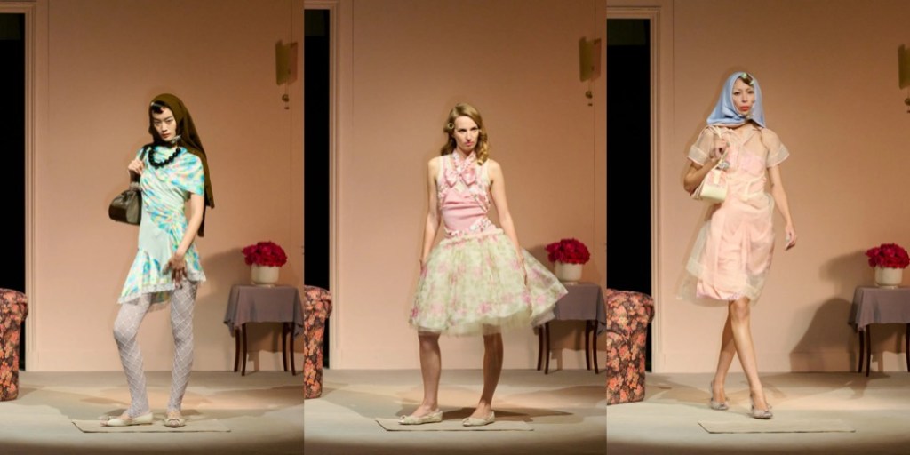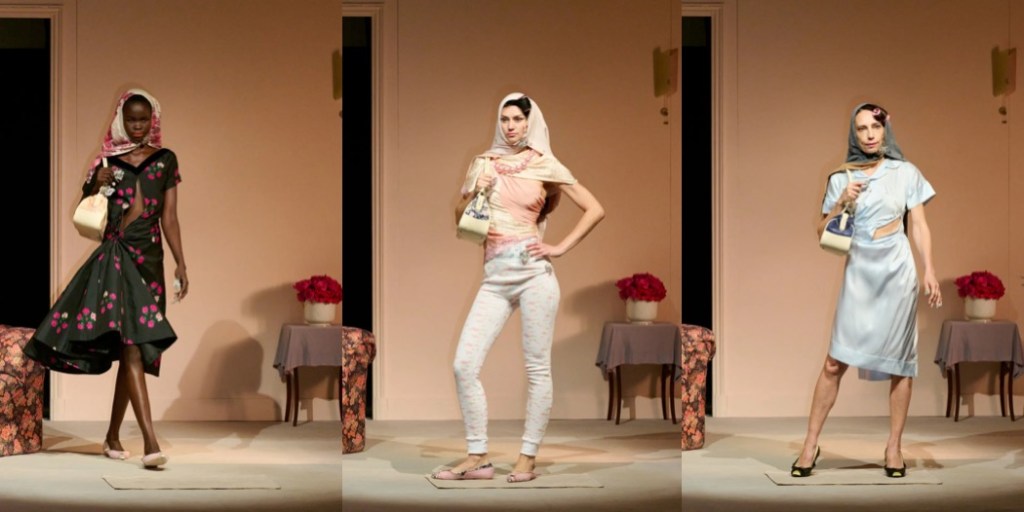 I loved how Benjamin Barron and Bror August Vestbø approached the theme of the housewife. Unlike Marc Jacobs, who explored that notion at Louis Vuitton back in 2010 in a Mad Men-ish way, the August Barron duo envisioned Grey Gardens’ Little Edie through a Lynchian lens. The result? High-octane drama mixed with 1950s floral skirts, heads wrapped in brooch-pinned cardigans, underpinnings peeking from beneath dresses in a chicly scandalous way, and an undercurrent of despair.
