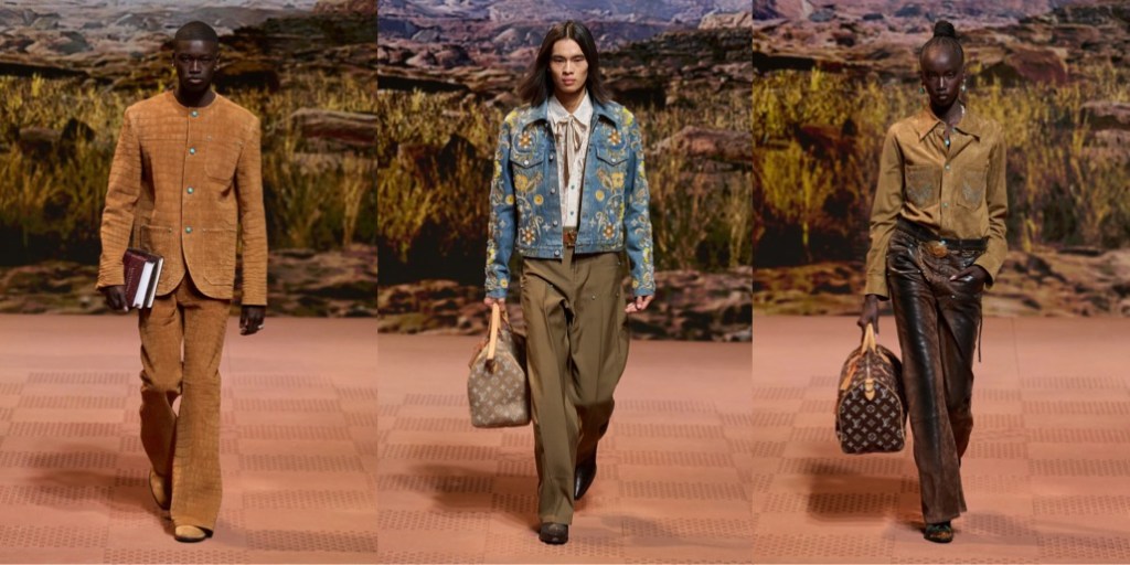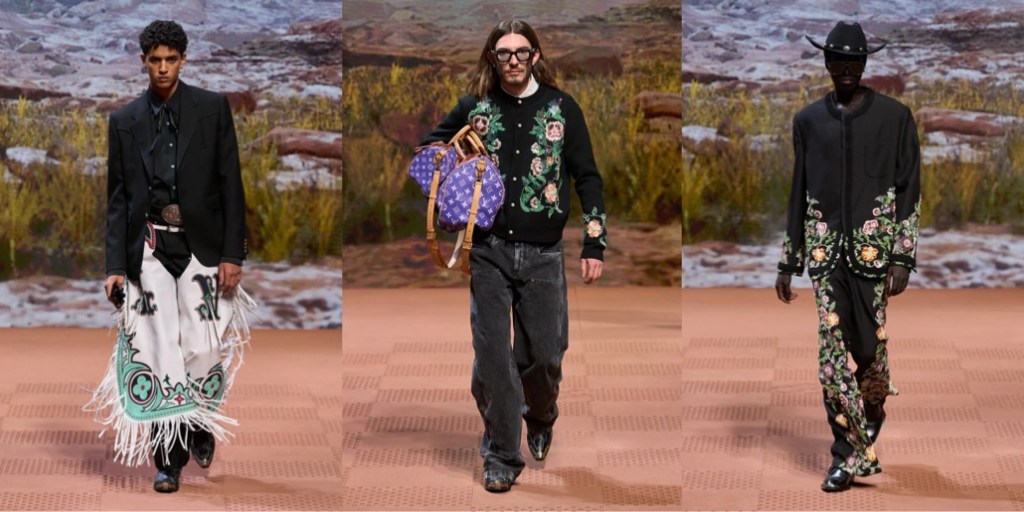 Two seasons might be two early to call, but as they say, first impression is the right one. Pharrell Williams’ direction at Louis Vuitton feels like watching a very self-satisfied kid play around with new, shiny toys. Or rather, as in case of the LVMH machine, huge resources. For his first fashion show for the brand, the musician decided to turn Paris into his sandpit. Why not make Pont Neuf (and eventually paralyze Parisian traffic for a day) a runway venue? Then, for his sophomore season, Pharrell picks a new theme: now he wants to play with cowboys! There’s no need for a further review of the autumn-winter 2024 outing at this point. The clothes – or rather overstyled outfits, some better, some worse – speak straightforwardly for themselves. Cowboys. Horses. So Ken.