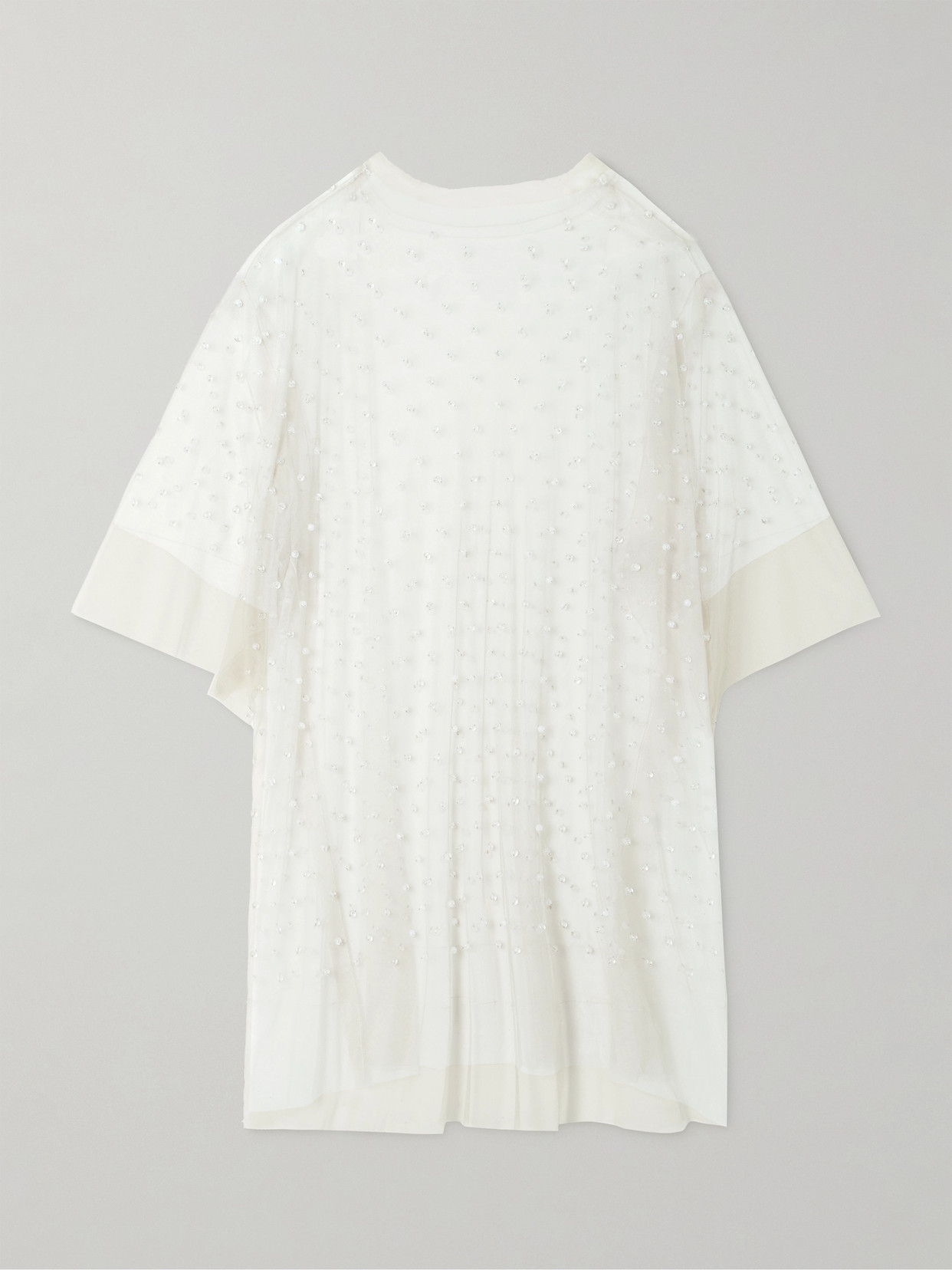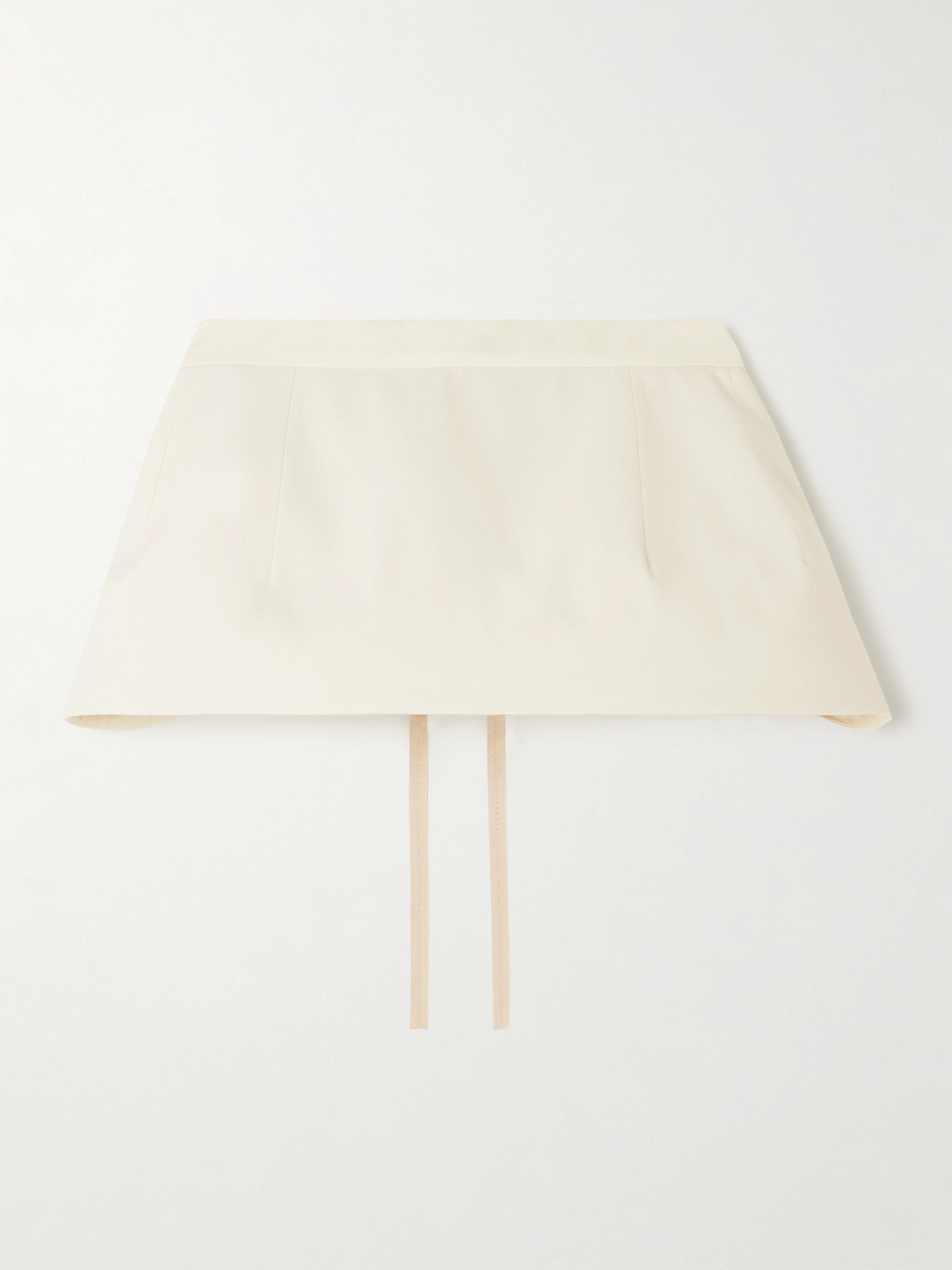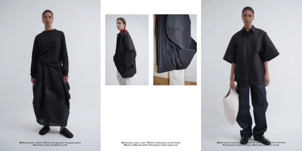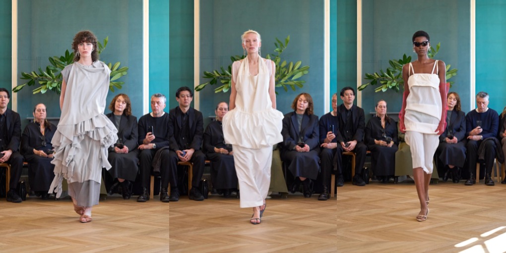 Louise Trotter‘s Carven is easily one of the best designer-and-brand pairings in a while. The spring-summer 2025 collection, which opened with a minimal dress in shade of champagne and constructed to hover just slightly away from the body, was about sense of an intimate world taking shape in unexpected ways. While the shoes were slippers and puffy mules, there was nothing sleepy about the collection as it beautifully balanced easy nonchalance with sophisticated chic. Trotter – just like Phoebe Philo or the Olsens – understands that dressing women means understanding their relationship to their clothes; her silhouettes are considered yet never overworked. The intriguing ambiguity of a rounded trench on Marte Mei and the extended white tuxedo shirtdress topped with an ample collarless black jacket on Jessica Miller were both standouts. Wherever the Carven woman is wearing these looks (you can imagine them in different circumstances), for Trotter they represent “the quotidian, the rituals.”