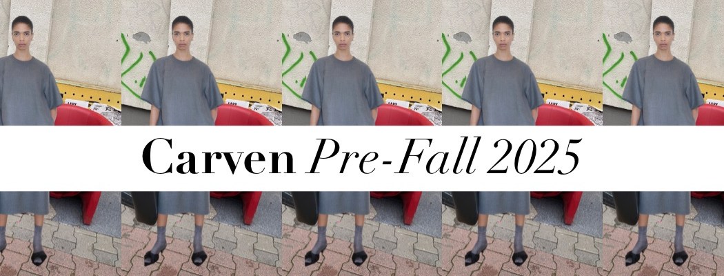 Carven‘s pre-fall 2025 collection, officially credited to the brand’s studio, is a good-looking transition moment between Louise Trotter’s work at the maison and the brand’s current creative director – and long-time collaborator of Trotter – Mark Thomas. The line-up, offering garments and accessories so wearable and easy-in-approach that it’s hard not to fall in love with their daily allure, is informed by blousy smock tops, wraparound apron shapes and a penchant for fabrics that appear structured to the eye yet soft around the body. One of the dresses with flannel on front and crushed lining in the back reminisces a 1950s couture dress with its strikingly simple, yet chic silhouette. Then you’ve got all the bubbly, t-shirt-inspired dresses and tops, minimal, timeless, versatile. The knits and cashmere shifts are pieces to be grateful for when you need to leave home looking pulled together. Carven became a go-to brand for less is more women who aren’t after The Row’s sophisticated oddness or Phoebe Philo’s contemporary strictness; the brand offers a warmer, cozier approach to minimalism. A madame minimalism.