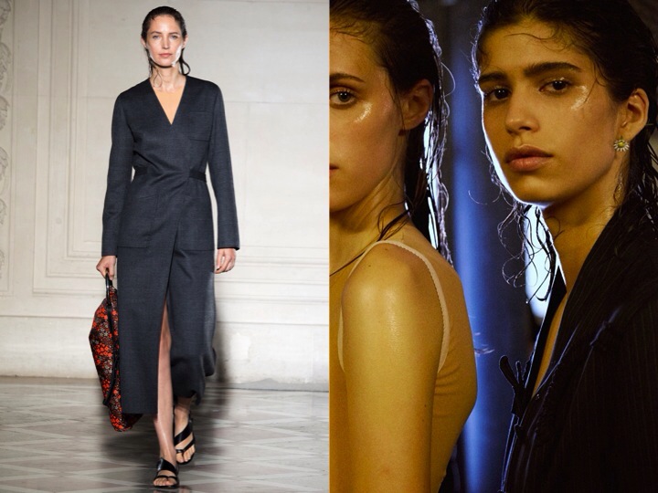 Wet. The models were literally wet during the Maison Martin Margiela show. What else felt “wow” in this collection? Hand-painted daisies on skirts and over-sized sunglasses. And the print mash-up with oriental kimono-like cut-outs. What was the idea, motif of the idea? No idea. But it felt attractive, a bit perverse and very mysterious. It feels elusive and totally Margiela.