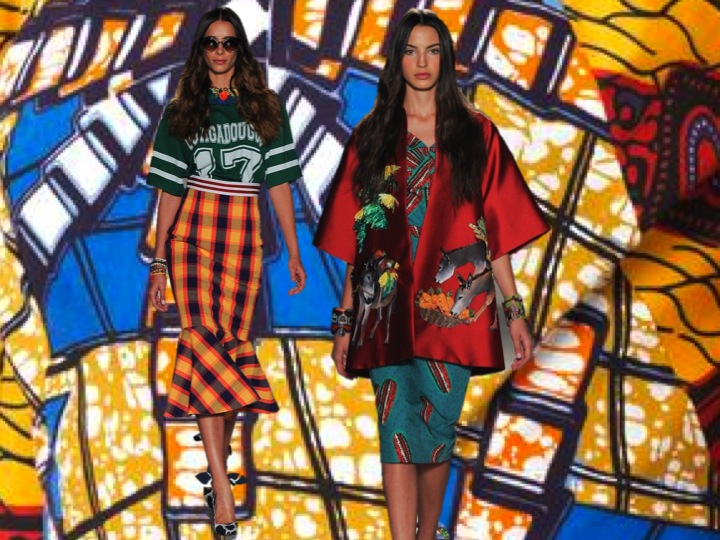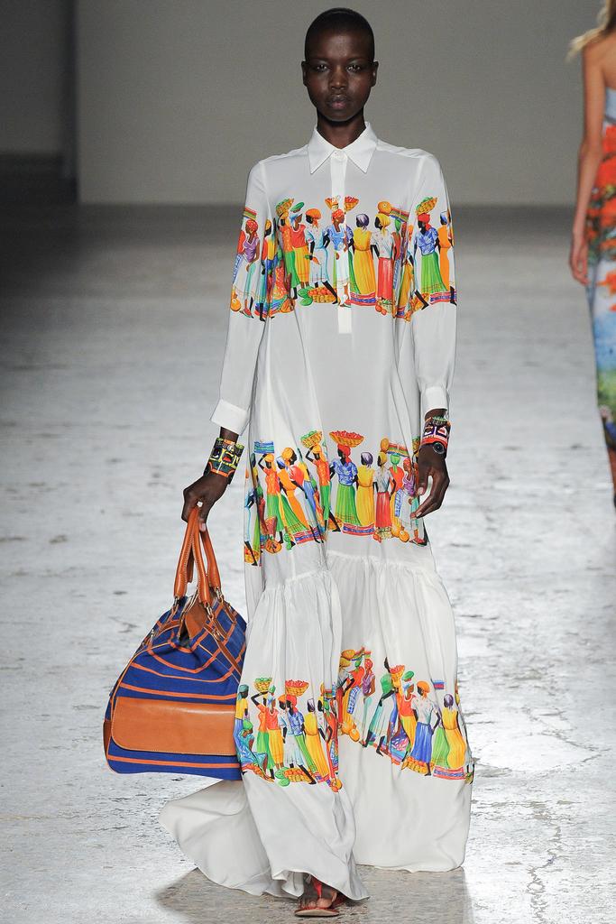 Aah, those Italian summers, where you simply swim the pool, sunbathe with a favourite book and visit those small, cozy villages… Stella Jean, the designer coming from Hawaii, which is based in Milan, really brought the Mediterrean sun to all of us in her latest collection for summer. The emerging star of MFW brings up odd silhouttes of her signature, strongly printed skirts and over-sized t-shirts, giving us the heat of Sardinia in one of the capes and beauty of Corsica in another dress. With the prints painted on the clothes, the collection feels very Stella Jean and very, very appropriate for hot summer! Instantly in love!