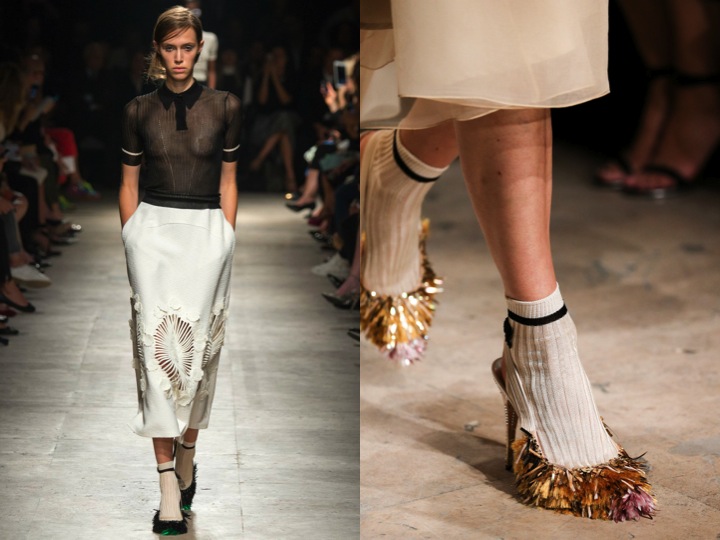 Being Rochas woman nowadays might be hard- work, children, time for a nap. And the brand is known for it’s non-chalance and avantgarde. But this summer, Alessandro Dell Acqua made a little bit easier. Although we’ve got the super couture embroideries and lots of sheer beauty, there is a new way of being Rochas- wear socks with one of their confetti sling-back pumps! They are gorgeous. Just like the logo-matic R on the blouses and dresses. But for those who feel like dressing up in mostly couture level, there are those breath-taking gowns with tulle, embellished flowers and ribbons… or skirts with crotchet knits… or one of those floral coats… In other words, Dell Acqua brought us lots of different options. And the sheer elements are like magic. As for his second collection for Rochas, mister Alessandro really feels the Rochas spirit.