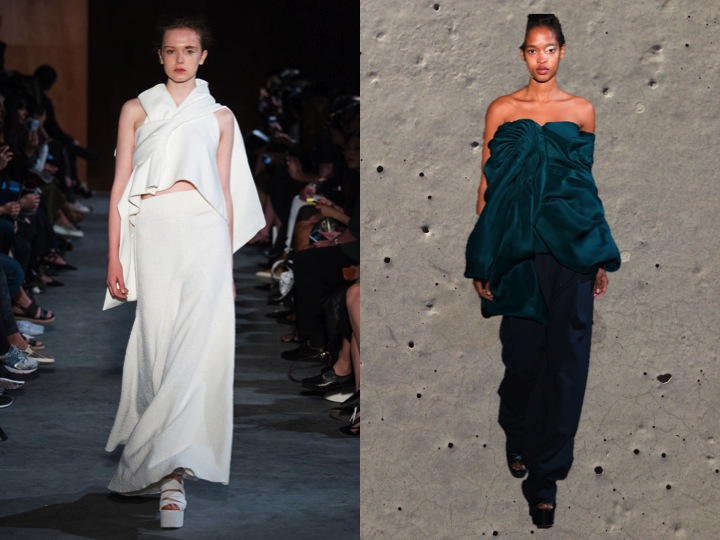 The Aussie girl, Kym Ellery, does sculptural beauty this time in Paris. The collection is so, so breath-taking. It has so much movement, flair, boldness… the materials used are so gorgeous, that the amazing over-sized ribbons look super effortless and wearable. Ellery always masters best the fun with fabrics- in their Paris-based studio, the real magic happens, making their collection better and better each season. Ellery had two main emphases: creating a lean, attenuated silhouette, and elaborating it with rich textures. The opening look established the theme: a pair of extra-long tweed trousers topped with a mesh undershirt and matching tweed singlet. The singlet had a buoyant flare, but this was a more measured take on the sculptural volumes Ellery has explored in the past. The tailoring was a highlight—lots of great pants—and the shirting, too, done in heavy-duty cottons with a touch of sheen. Ellery also scored with her long, almost monastic tank dresses, which kicked out under the hip. Serene but with a vibrant atmosphere in the air.