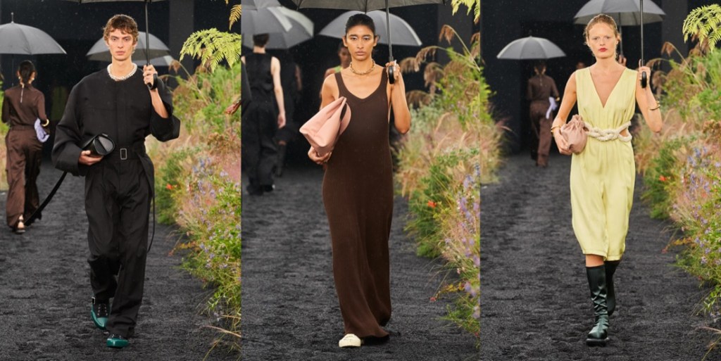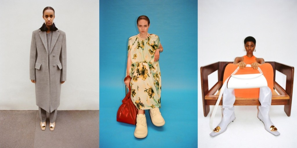 Five years since their appointment as creative directors of Jil Sander, Lucie and Luke Meier decided to switch it up. In their autumn-winter 2023 collection, you won’t find their signature soft minimalism and a regular palette of neutrals, pastels and creams. The first look – a leather motorcycle jacket – was a clear sign something’s different this season. “We kind of looked back at our formative years, the ’90s and 2000s,” said Lucie. “We were thinking about how the outlook was so positive and exciting, thinking about technology coming into our lives. Now the positivity about the future is more difficult to hold up.” Luke interjected: “It’s always a bit rose-tinted, the past, but the one resounding element here was that there was this openness to kind of cross contaminate things.” The original Jil Sander wouldn’t recognize much of the tailoring, but in a season of samey pantsuits, the Meiers’ streamlined, zip-front jackets and expandable trousers were a fresh take. Strangely, some of the looks had more to do with Consuelo Castiglioni’s (Marni’s founder) quirky sensibility than with the German designer’s impact. Bjork’s love song “All Neon Like” soundtracked the show, and her eccentricities sparked some of the ideas here, like the pretty degradé floral print dresses that were paired with nubby-soled sneaker boots. It was good to see he Meiers exercising their individuality, whether that was in the form of an airy, generously cut parachute dress embellished with crushed metal flowers or tunics and tees digitally printed and jacquarded with fruits and bonbons. Still, the overall effect felt try-hard and too inconsistent.