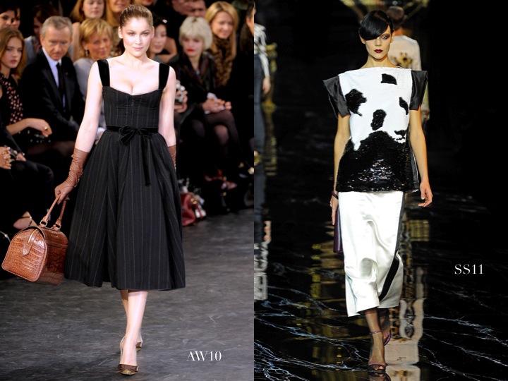 Miuccia Prada conveys, as she likes to describe, something “perverse and girlie” to Miu Miu. The recent collection, filled with sheer apron dresses, felt seductive and elusive at the same time. Just like Madonna’s style from Erotica and Human Nature period – a lot of flesh exposure, satin underwear and transparent mini dresses, as everyone can distinctly remember. Erotica, romance. I’d like to put you in a trance.
