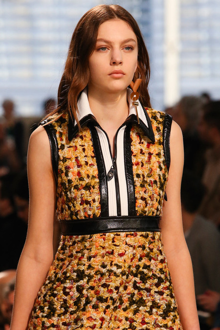 Sweet Sixties- This time, the sixties mean biker jackets, leather coats, fur tops and monochrome mini-dresses. The perfect example is Gucci, which was inspired with archival jet-set and timeless pieces… Just like Louis Vuitton which showed as a coat that is already a must-have of the season. Gucci, Louis Vuitton, Victoria Beckham, Saint Laurent