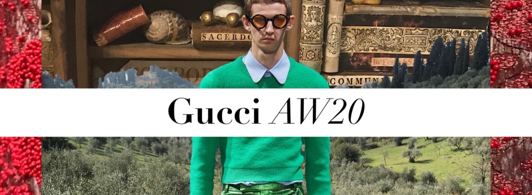 A huge pendulum ticktocked back and forth, drawing a line in the sand beneath it. The mood felt far more sober that usual. Time for reflection? “Fashion is a sort of clock,” Alessando Michele rightly observed after his Gucci autumn-winter 2020 collection for men. Michele’s very first show – of a collection assembled in only five days after Frida Gianini’s abrupt departure – was held at the Milan menswear week in January 2015. And who would have thought it’s impact will be this big – not only for Gucci, but fashion in general? Michele referred back to that first collection – the open-back kangaroo-lined loafers that were his first big accessories hit were among the footwear in the new collection. But this was not self-reference for the sake of it. “I haven’t got any nostalgia,” he said. “I don’t cling to the past…. I use the past because the past is a very interesting space.” Grannyish knits and David Bowie-ish metallic flares, Kurt Cobain-ish grungy ’90s denim and a Courtney Love-ish leopard-print coat. Those were the first references that came to mind. And the tongue-in-cheek title of the show – ‘Rave Like You Are Five’? Most of the clothes were styled the way children wear their clothes when parents aren’t around: the way they like, not the way they areobliged to. Michele was also exploring the big idea of the season: an emphasis on the potential boundarylessness of masculinity rather than its long-constructed boundaries. “This is not a narrative that excludes or rules out mainstream masculinity; on the contrary, I want to talk about how complex it is to be a man. And this means growing up maybe in a different way because the world of men is very diverse and full of different elements like the feminine world.” But what I enjoyed the most in this collection was the lack of the Gucci-fied over-the-topness (which the designer signalised for the first time in his spring-summer 2020 line-up). Without all the drowning opulence that Michele made us used to in the last couple of years, you really feel and see his pure aesthetic.