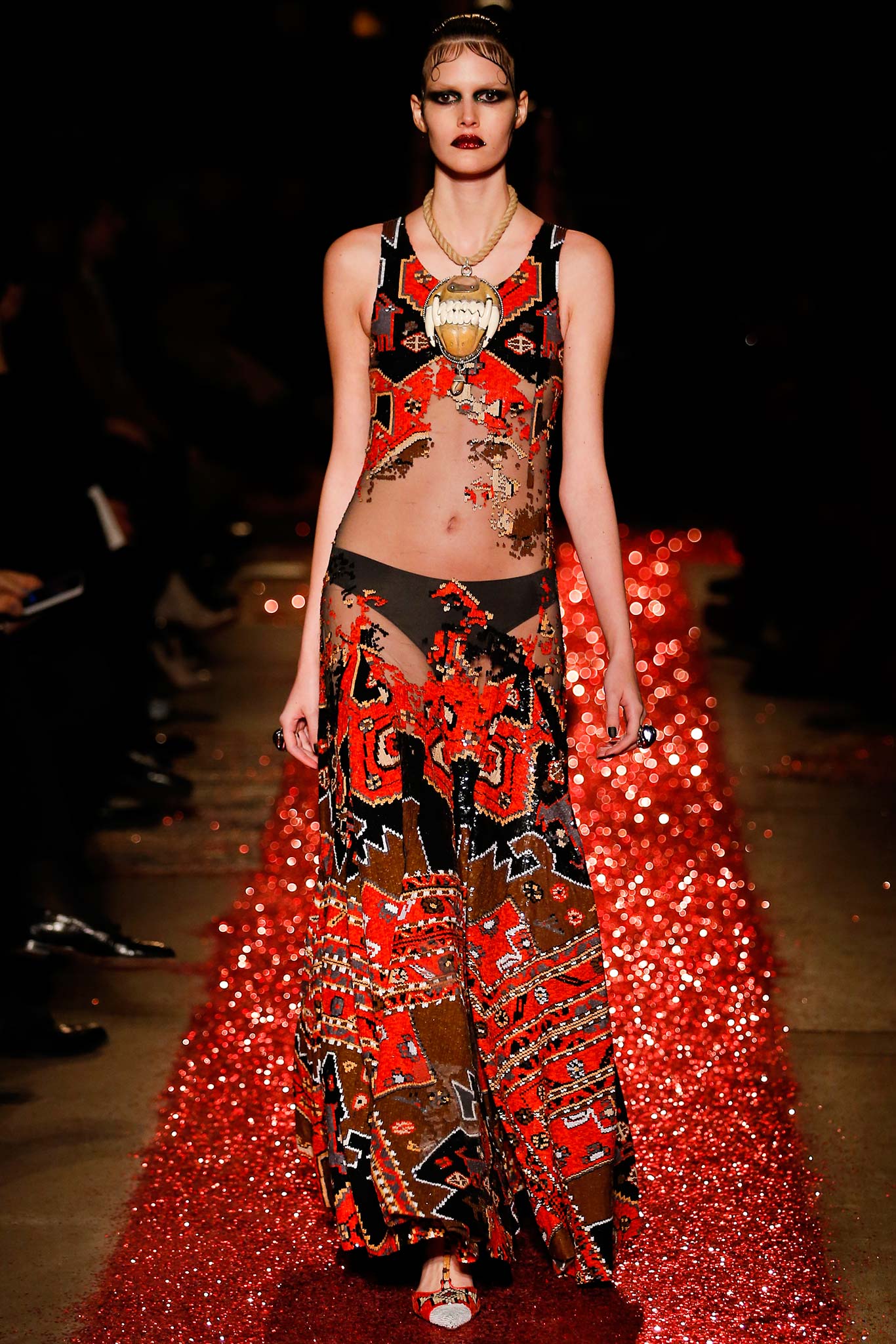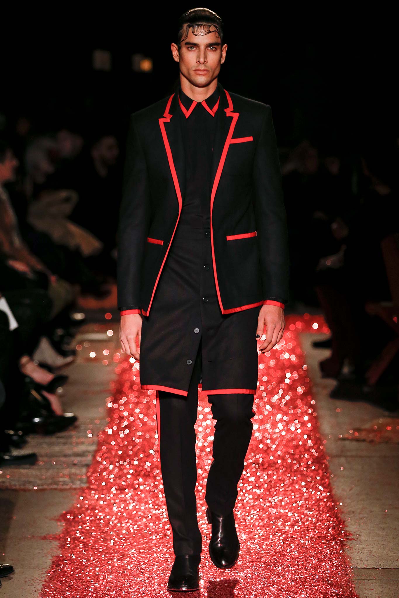 Riccardo Tisci pleases me from time to time – and this collection is good. It’s spooky, artistic, haunted, mysterious… the models had their faces painted in abstract ways and all of them looked superb on that red glitter runway. The boys wore strongly embroidered varsity jackets while girls… couture. Yep. Riccardo Tisci brings haute couture back to Givenchy. And that’s just great in my opinion. Thankfully, Riccardo goes away from the commercial side, and thinks beauty and craftsmenship again!