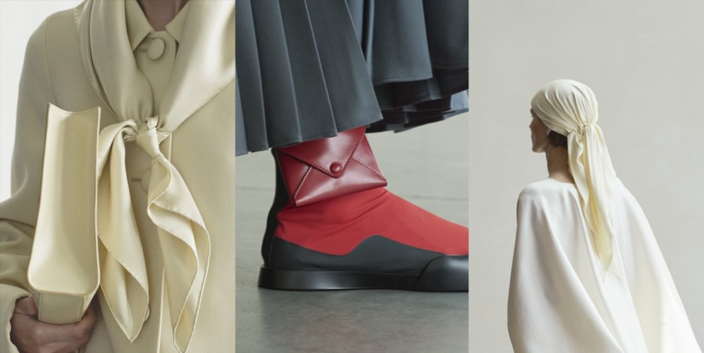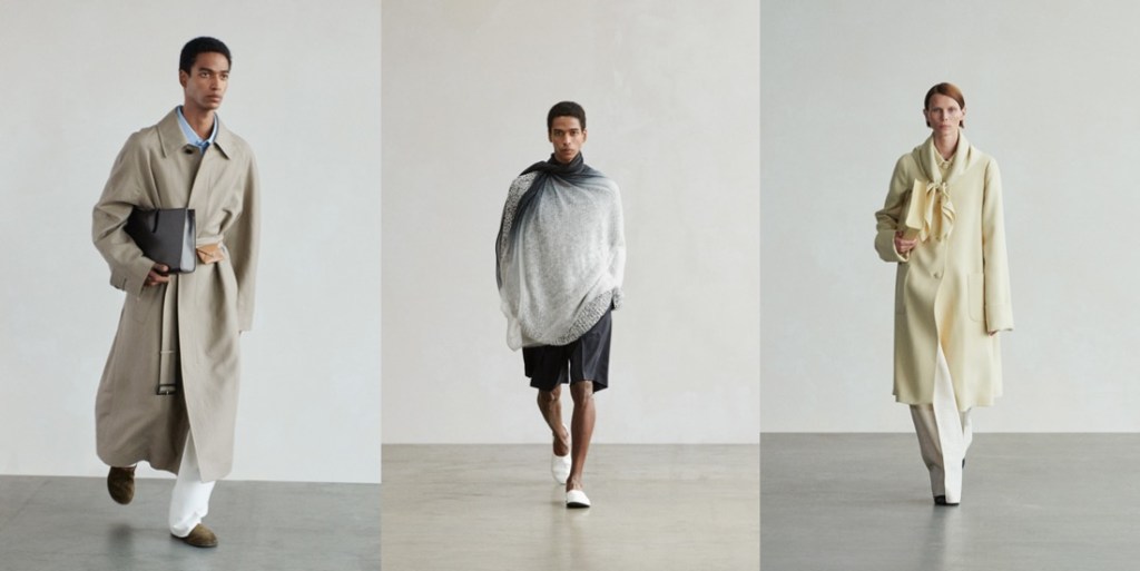 The idea of essentialism also informed the Olsens’ level of details and decoration, or rather lack thereof. Everything was made as minimal as possible but without compromising the sense of drama that made this collection a fashion proposition. They cut away necklines to create plunge shapes, disguised hems and pockets, and removed zips and buttons. In menswear, they gave super-light unlined suiting the structure you usually only get from lining through the kind of fabrication that makes The Row worth its price tag, and proposed the kind of luxe oversized shirts and loose-fitting knits that made you want to invest in a new wardrobe for a changed climate. Heavenly…
