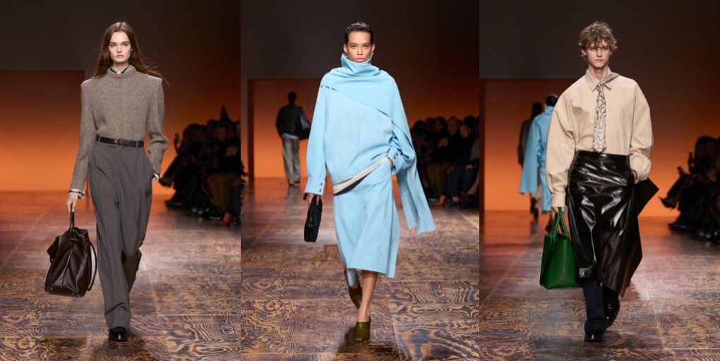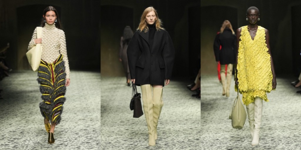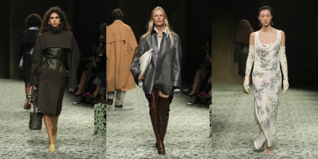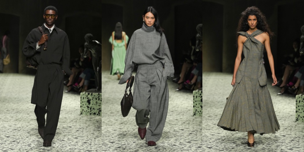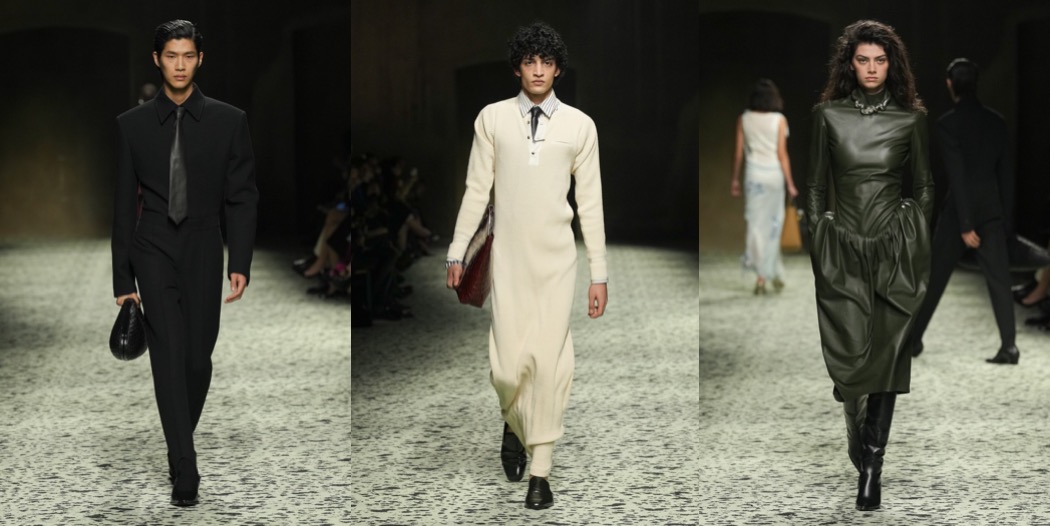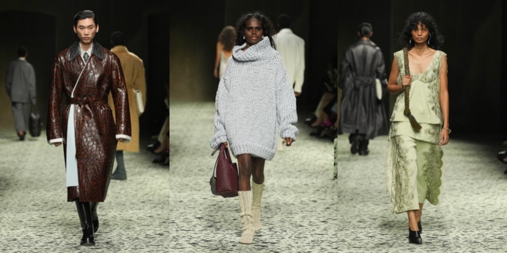 At Bottega Veneta, Matthieu Blazy delivered his best collection to date. The reason the autumn-winter 2024 show felt this good was not only because Blazy found a way to make his love for artisan detail finally look light and spontaneous, sprezzatura-way. The Bottega Veneta line-up delivered a sense of authentic style, a true rarity to observe during fashion month. That might have come to Blazy with a change in his creative mindset. “The initial idea was to reduce the collection to almost the function of clothes – only reduce not to the minimum, but to a maximum. I was interested in making a monument out of the everyday.” It started with the first look, a couture-ish black cocoon coat whose rounded, three-dimensional silhouette was the result of the folding in of its sides and sleeves, which were secured with big brass buttons. Unfasten them and the coat becomes more or less flat. The nonchalant, unstudied result is stunning. This season’s clothes are refreshingly stripped back: gone were the embroideries and embellishments that defined last season’s collection, but there was no shortage of impressive workmanship. Blazy said, “I wanted the technique to be in the fabric itself.” A fine example of that was the “memory” prints made from layer upon layer of passport stamps that he used for a trio of willowy looks with swooping tiers on their skirts. As we see 2024 fashion unveil, there’s a strong flux of “everyday” clothes; amid all the crises, the understandable tendency among design houses and their executives is to play it safe. As we’ve seen so far this season, that can lead to same-y fashion, indistinguishable from one runway to the next. Blazy is immune to that risk.