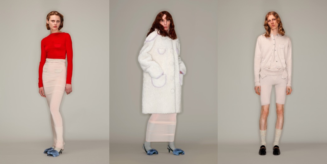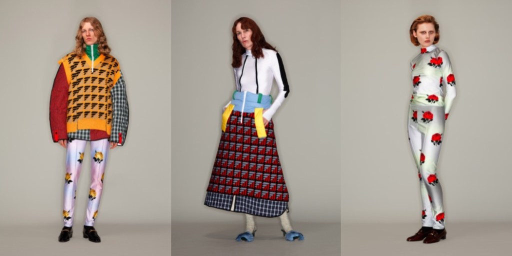 The comedy (and drama) of a family portrait is one of the concepts that informed Meryll Rogge’s autumn-winter 2023 collection. Called “The Holiday Album“, it was inspired by a variety of sources, from Home Alone to Rogge’s very personal memories of Y2k – the event and the aesthetic. The Belgian designer’s latest collection included a group of ski-thermal pieces including a body-con dress and bodysuit with unexpected pockets that complimented the more directly ski and apres-ski looks, like quilted nylon outerwear and tulle-padded pants. The snowiest and most luxe piece was a hand-worked upcycled shearling coat. Only a few will be made. What was notable about the suiting this season was the trouser silhouette; Rogge opted for cigarette – or in the context of this collection, maybe peppermint stick is a better description – legs. Those grays were overpowered by the more vibrant and extravagant party looks. Known for her hybrid pieces, the designer not only fused tartan to denim jeans, but added a sort of fishtail or kick hem, revealing the lining that flutters as the wearer walks. Plaids were also made into more pajama-like looks. Conifers seemed to have inspired the A-line shapes, while Christmas tree tinsel was translated into crinkled metallics and satins, and many pieces were ornamented with large, dense, sequins. One of the best bits of the offering was a deconstructed dress in pink satin with mismatched vintage buttons. Roses stood in for poinsettias, too obvious a reference, the designer said, and they added dimensionality and fun to a pair of Rudolf-red briefs and a glorious, hand-embroidered dress with a Poiret-like silhouette. There was even a boxy “present” dress of red Lurex, the most literal take on the theme. This kind of very eclectic, general incoherence made sense in light of the (now very well exhausted) Y2K theme, and because holidays bring disparate family members (chosen or real) together.