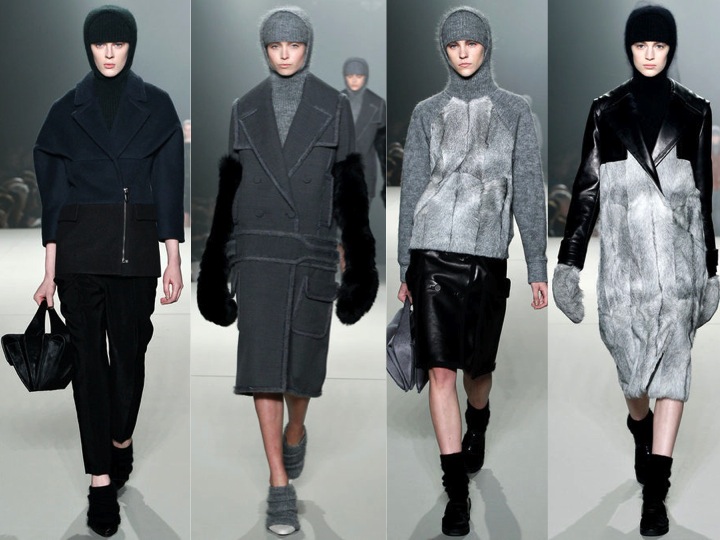 Here we are back in New York City, the American capital of fashion. The NY Fashion Week started with new ideas, new (furry) trends and colours. For beginning I chose Alexander Wang with his amazing collectio that I called Nomadian Elegance. When the model with a grey hoodie on her head, grey structured coat and amazing, long, black, made out of fur gloves, I knew Wang will be leading in the new season. Then came more and more sweaters, coats that remind me slightly of Parisian chick like Margiela or Celine. When the in-the-hoodie models change into without-a-hoodie ones, I saw some influences with Wang’s past collections- Sweatshirts with holes, and a lot of metallic youth vibe!