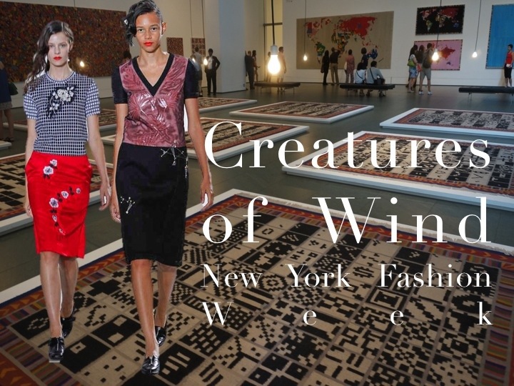 Surprise, surprise! NYFW just started! Full of energy and fresh designers, the first day was all about… style of New Yorker “too-cool-to-care” style, that is always bright and not banal! S, here I am writing about the first, selected by me collection of New York Fashion Week (last year we started with Alexander Wang!), Creatures of The Wind. This young label designed by duo of “cool” boys is a definition of youth and coolness of NYC people. It is a mix of python prints, colour blocks, flower embroideries, loose trousers and straight forms that look casual and at the same time extremely elegant- but with fantasy. What I seriously loved about this season at CoTW were the fabrics- beautiful, a bit rustical rose embroideries mixed with super modern materials… And the structural skirts looked like art pieces on the models silhouette. This is a extremely cool collection. Can’t wait for more NYFW that is always exciting!