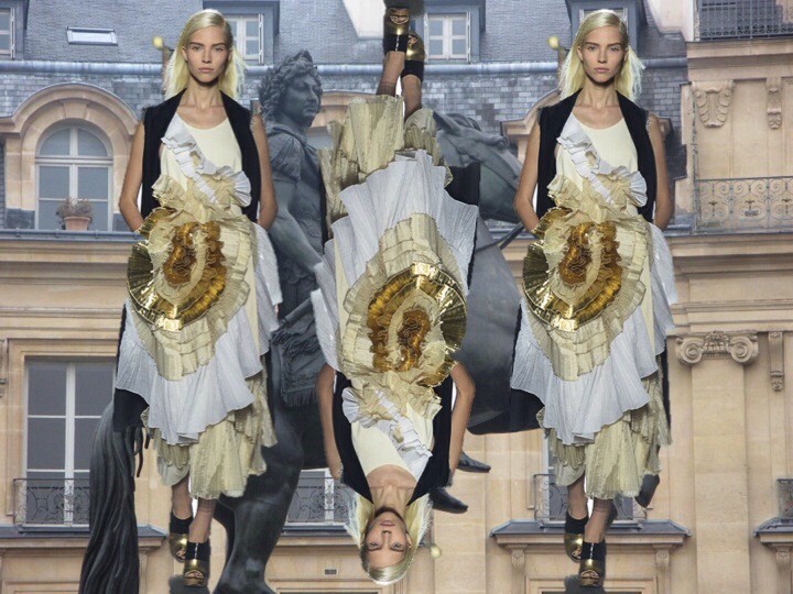 That was a very classical Lanvin collection- dresses, jackets, t-shirts with skirts- ant that all in energetic metallic fabrics! Well, that was surely not the best Lanvin, but it wasn’t bad. I loved the Great Gatsby inspired dresses- in reality, the collection was like a loud party under Jay Gatsby’s roof. Everything was kitschy and full of splendour… and what a bit suprised me, pretty warm as for Summer. But still, the collection was nothing spectacural, although cool. Very Lanvin!