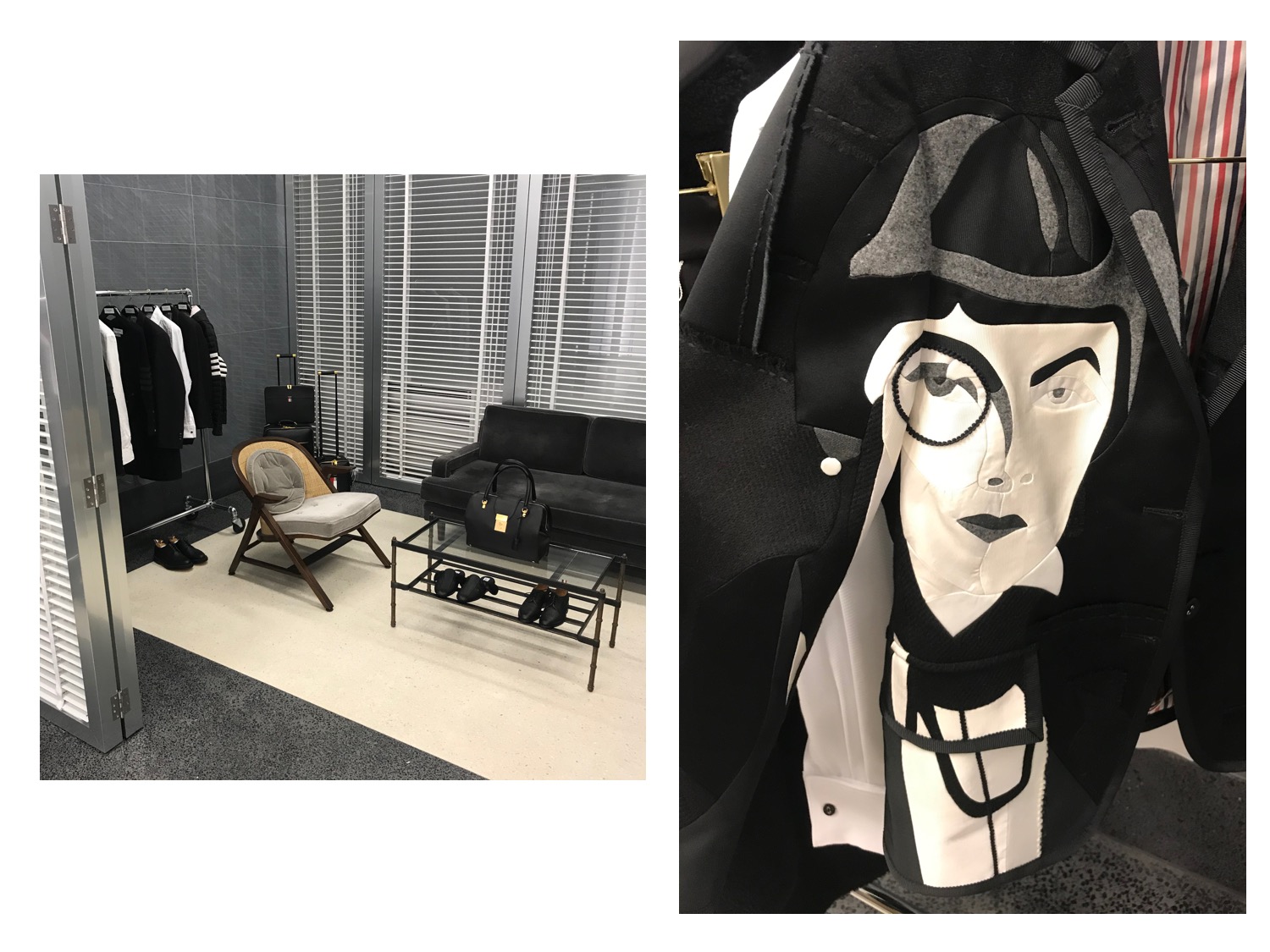 Dries Van Noten blazer, Simone Rocha pearl clutch mini bag