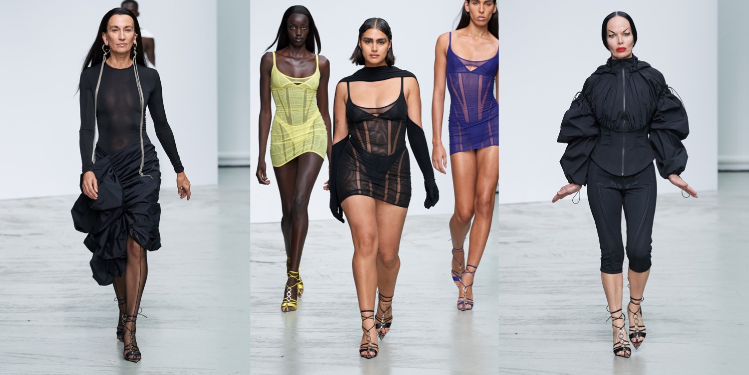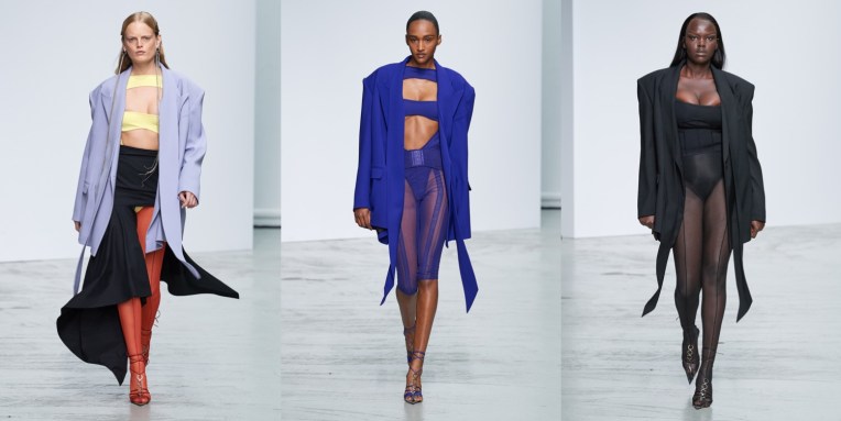 While Casey Cadwallader‘s Mugler tailoring and corsetry is razor sharp, it’s also unbelievably body-loving and inclusive. For spring-summer 2020, the designer made a meaningful statement: his vision of the brand isn’t just for Instagram bodies, but for all. Yes, maybe Bella Hadid opened the show (she’s the only social-media-model I like), but the clothes were represented by women of different colors, sizes and gender identities. Kembra Pfahler took a runway turn, just like Debra Shaw, Karen Elson and Hanne Gaby Odiele. And the clothes? They were great, possibly the best we’ve seen from Cadwallader throughout his time at the label. Thierry Mugler’s vintage work from the ’80s and ’90s is the key inspiration for Casey, but he doesn’t let nostalgia ruin it. Exaggerated proportions and twisted glamour continue to be super seductive thanks to the usage of performance fabrics, while keeping the aesthetic clean and sharp lets Mugler look relevant and fresh. The more daring ones may choose a cropped jacket, net corset, and derrière-lifting stockings. The ones looking for something more day-ish, yet equally empowering, please take a look at the satin trench coat, an over-sized lilac blazer or the draped pencil skirts.