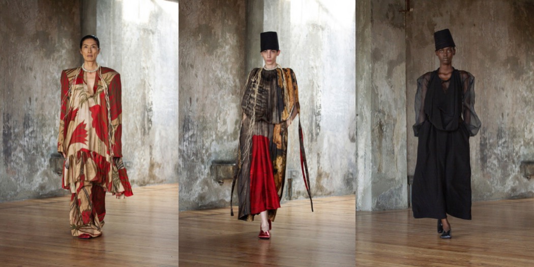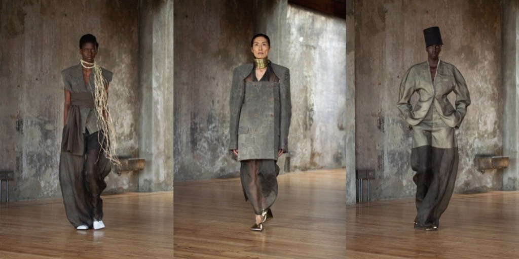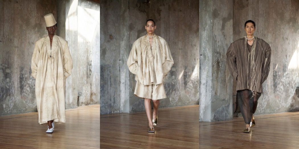 Sometimes, you’ve got a fashion collection that is pure poetry. Uma Wang‘s spring-summer 2023 is one of these rare examples. Her line-up is an ode to nature – but not in a cliché way. The neutral palette conjured the serene eternity of desert sands; coffee dye gave an earthiness to some of the materials. The second look was created from one length of a metal and cotton fabric that resembles tree bark. Sheer nylon was used, said Wang, to evoke “a white cloud in the sky.” Just as Wang harnessed different natural elements – sky and earth, for example – so she combined menswear touches with soft draping, flou, and structure. This collection read as mature as opposed to trendy because of the clarity of Wang’s vision, which is largely derived from her passion for materials. The designer works closely with Italian mills creating incredible, often textural fabrics, which help to inform the silhouettes. In general, Wang’s stories are like collages of different stories that somehow make sense when connected. For spring, Wang borrowed from the world of interiors a frayed cotton meant to evoke a woman wearing something she found at an antiques market. There was an ’80s boldness to menswear-inspired coats, jackets, and sleeves, for example. The square-toe shoes were inspired by those worn during the Ming Dynasty. The styling of the necklaces and hats tripped up a narrative that otherwise felt like a true fusion of elements relating to culture, history, and gender forged into something new. In her show notes, Wang wrote of nature existing beyond boundary and taboo; she associates wilderness with freedom. The humility one feels in the face of the natural world finds a parallel in the designer’s respect for textiles and craft, but otherwise this collection, which showcased Wang’s formidable talents, celebrated the power of a woman, giving her the option to stand strong, proud, free with the sturdiness of a tree or the gentleness of a cloud.