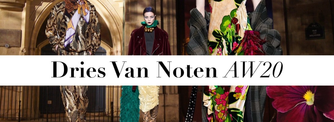 After last season‘s collaboration with Christian Lacroix, it was clear that for autumn-winter 2020, Dries Van Noten would somehow continue with this energy. That psychological afterglow is with Van Noten, as he cheerfully admitted backstage of his show: “With Christian it was so liberating to enjoy, to play, to not think too far ahead about product.” He laughed, summing up what he learned from his friend, the French couturier. “If you think you have a lot of fabric and embroidery, then do some more! Just go for it!” Van Noten was thinking about “nocturnal glamour” and particularly the dressed-to-kill creatures of the glam 1970s and high 1980s, whom he glimpsed from afar as a young man in Antwerp, in the form of the high-gloss photography of the makeup artist Serge Lutens. Maybe she was heading for a night at the most trendy club in Paris. Or maybe that was her, wending her way home in daylight, with a plaid coat shrugged over her glitter. “It’s about going out, enjoying life – having fun, that’s very important!” he remarked. “I thought of this party girl. Something mysterious. Something dark. But I questioned how far it could go, while staying contemporary.” His solution was to partially casualize the glamour by applying his melee of acid green and fuchsia jungle prints to fluid pajama shapes, and adding ’90s grunge–influenced plaids and hip-tied shirts to the mix. Equally head-turning: a dress in a violent purple, streaked with silver embroidery. Billie Eilish’ slime-green hair is a sort of 2020 party-look must-have which Dries picked up as well.