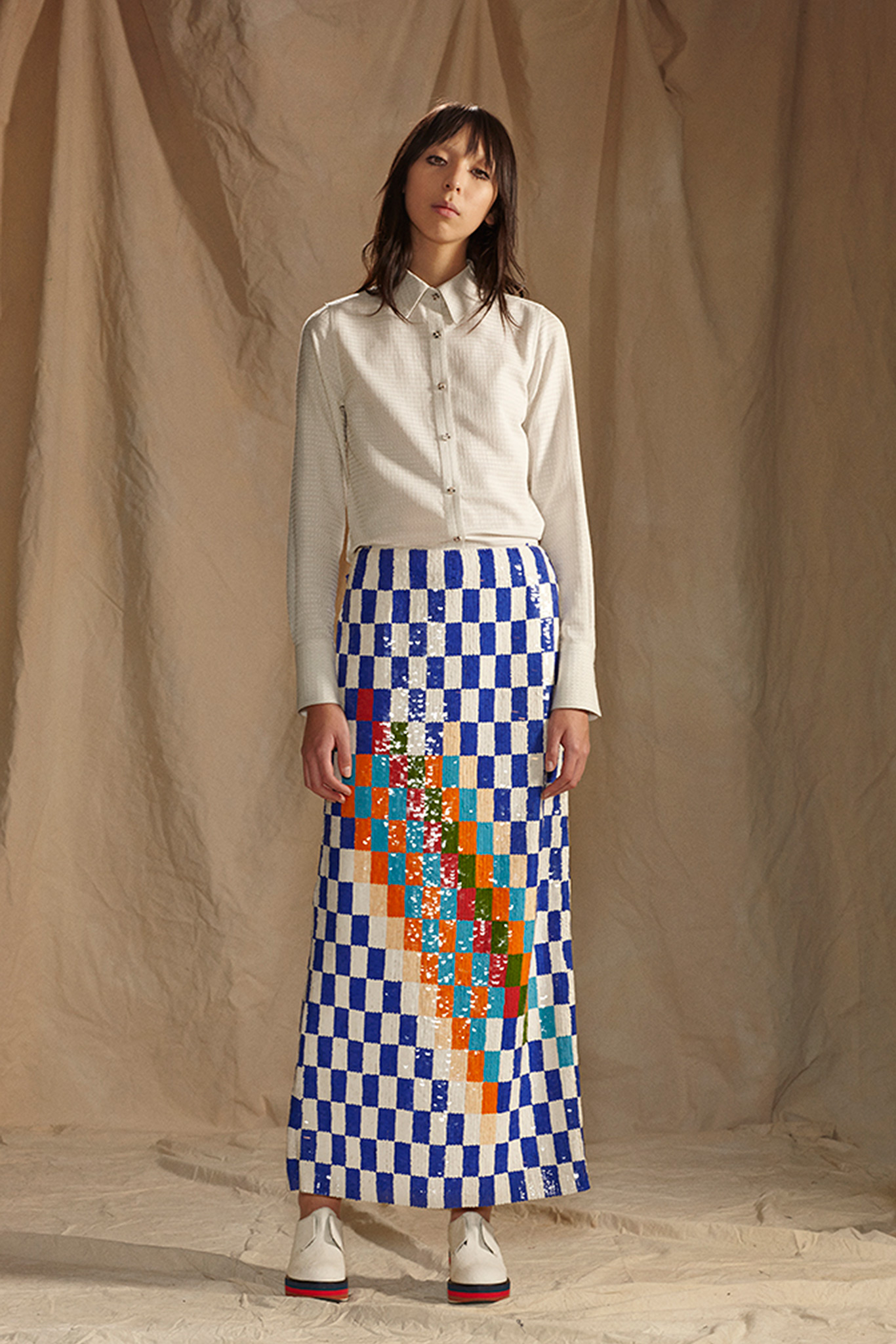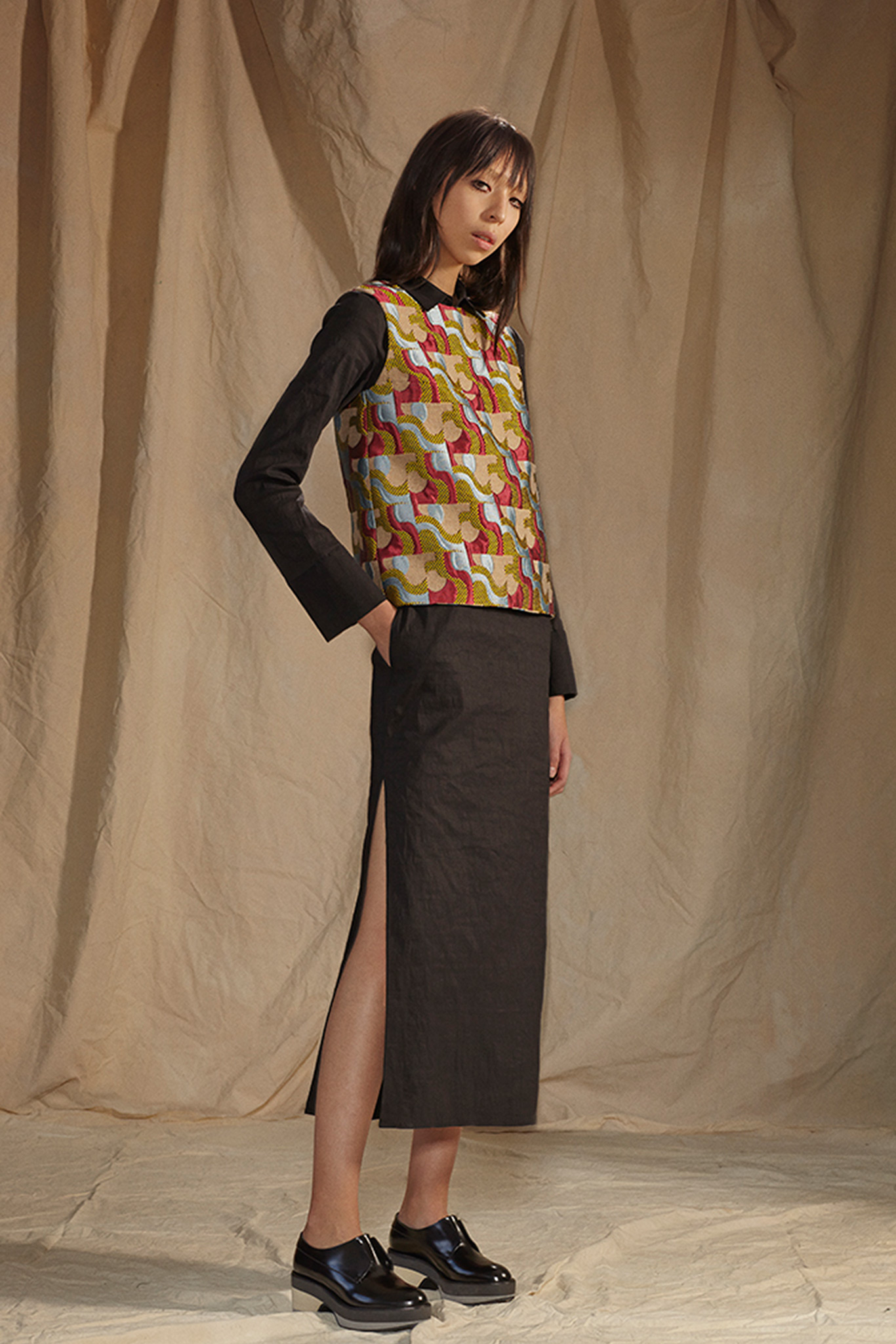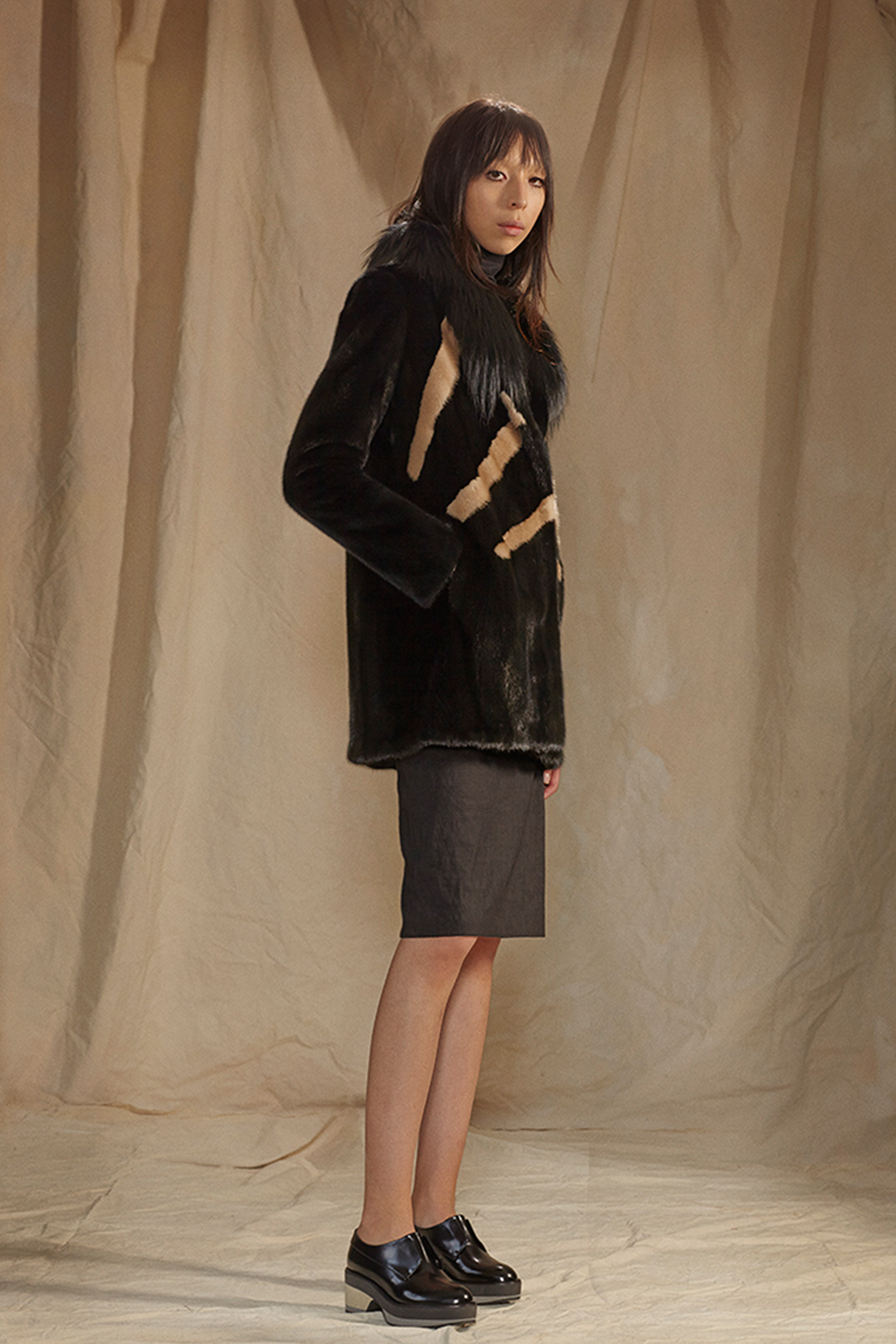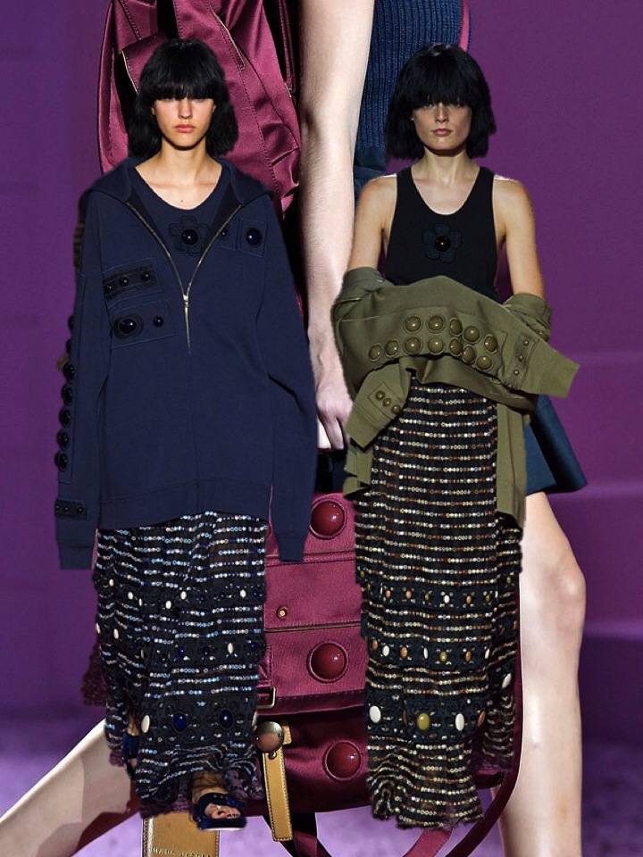 “We cover our women and guys throughout the day, but they’ve also been asking how they can do Baja East for evening,” said cofounder John Targon. The answer? “Relaxed cocktail.” Targon and Scott Studenberg have built Baja East around the idea of unisexual dressing—clothes that work well, but differently, on both men and women. Their knitwear lends itself nicely to the concept, looking fluid-like and wrapped all around the body. Pre-Fall’s pale pink ribbed cotton baja is not only Baja East signature, but also the conection to 2014’s main think- normcore.A silk-lined, spangly Lurex wrap skirt, paired with an oversize chunky cashmere sweater, is a no-brainer for women, but an interesting challenge for the daring man who trust the brand. But what really clearly works both ways is the brand’s fabrications. A Japanese silk crepe, used on a simple snap-front skirt and a pair of side-pocket harem pants, felt good enough to sleep in. And the turtlenecks are going to give you warmth everywhere.