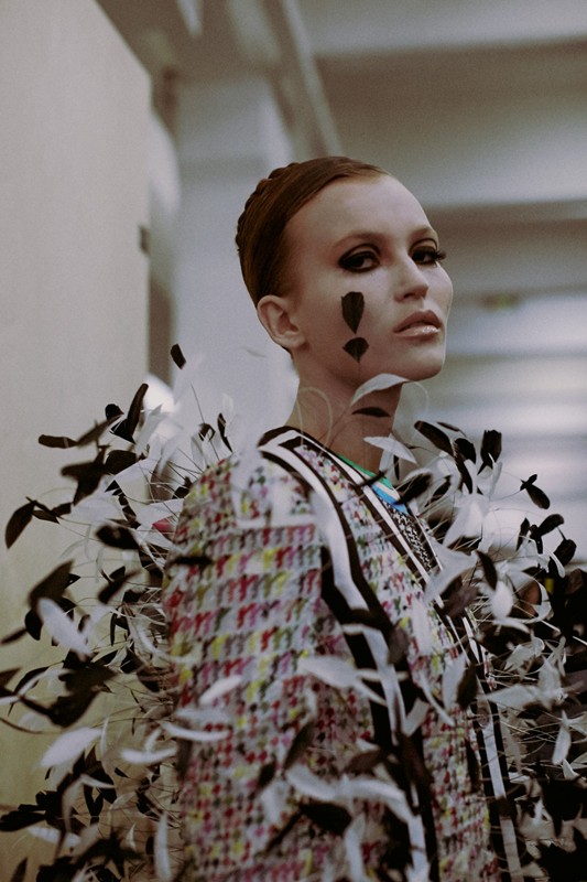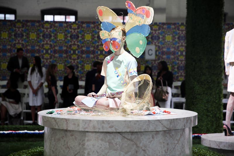It was slightly hippie, but not to hippie at the same time. Victoria Beckham, the ex-queen of high-heels, brings us the world of beautiful flats, showing her debutant shoes (created by the brand Victoria Beckham, and not Manolo Blahnik). For summer, Victoria started with linen, producing delicate dresses, jumpsuits and coats. Then we had a series of burgundy and white, ending up with pink abstract flowers. And that’s the best collection to date, Victoria! It’s not stiff and cold. The power of matternity shows, that every woman creates something beautiful. Big, big bravo, Victoria Beckham. I am moved. And the art is by Johanna Tagada, the artist based in Berlin.