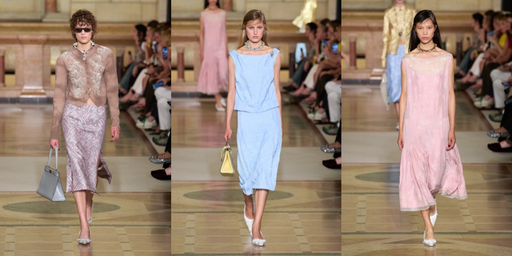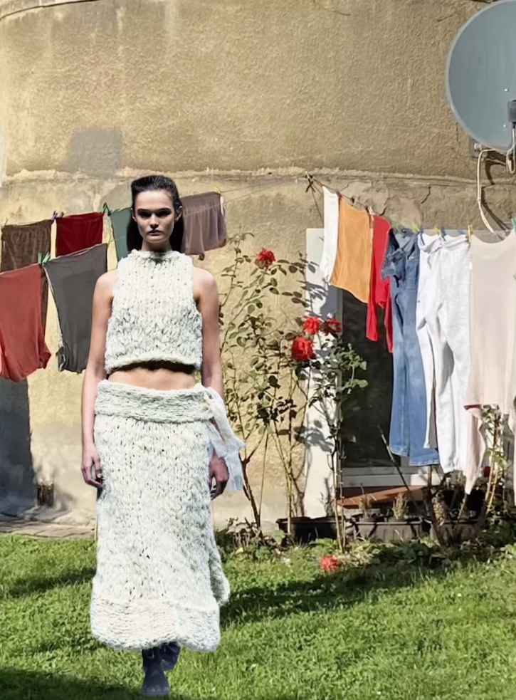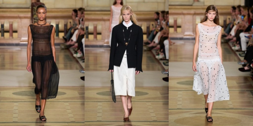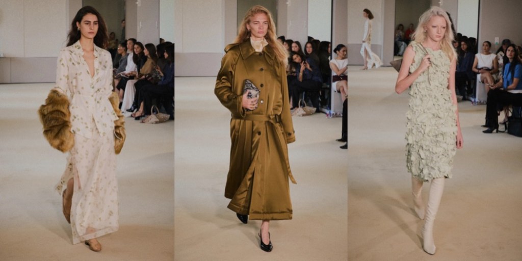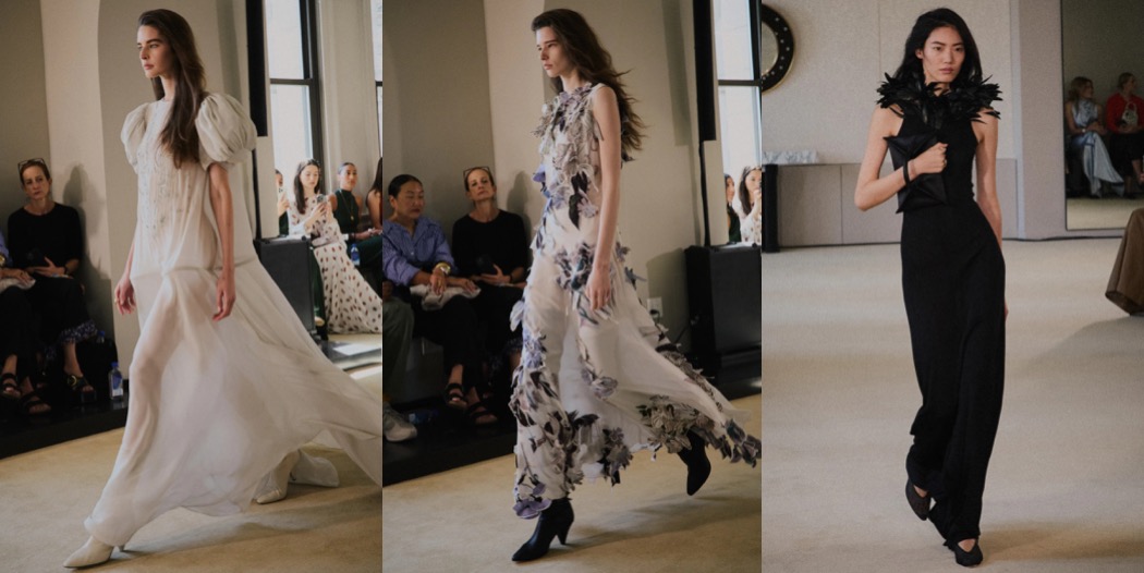 I’ve been following Colleen Allen’s work since her debut, and it’s thrilling to see her collections strengthen season after season. Allen knows exactly who her woman is, and she designs with that archetype in mind. She’s poised and elegant, but with a touch of witchy allure – and an affinity for a peekaboo, négligé moment. Lace-trimmed bralettes and maxi skirts from the spring collection played with frivolous flashes of skin, while ecclesiastical silk cloaks added a sense of regality. Allen’s garments, though, are best appreciated in motion: her dresses dissolve into airy mists that wrap around the body. As she continues to develop her business, I’d love to see her step onto the runway.