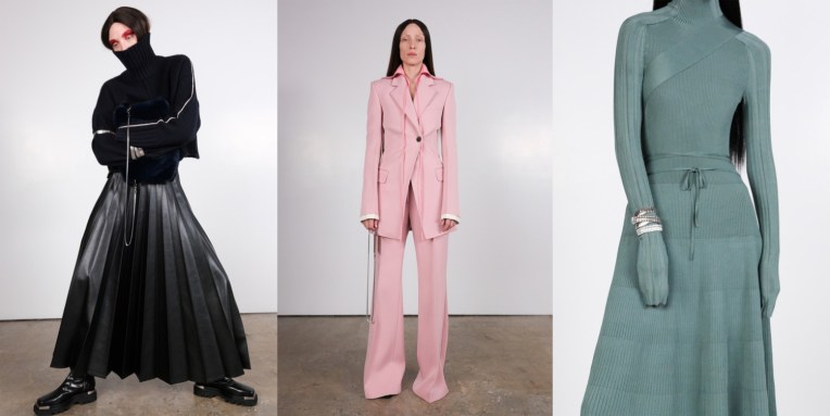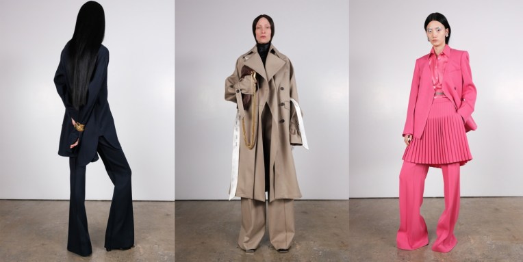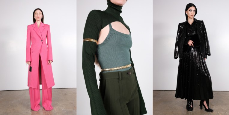 Peter Do is the “old Céline” guard, who developed his aesthetic and style under Phoebe Philo. Add a succesful Instagram performance and thoughtful visual communication, and it’s a label that immediately got on everybody’s lips. It’s Do’s second official season, and here’s what we’ve got: modern uniforms of exceptionally tailored pieces which are both functional and fashion-forward. The autumn-winter 2020 palette is a treat: gray, accented with rose, scarlet, and hunter green. The black, all-sequinned blazer and matching pleated skirt is a great alternative to eveningwear. The label also debuts with footwear, which is all about heavy, polished-leather boots with metallic elements. Some looks felt over-sophisticated, like the oddly sharp cuts of the jackets’ lapels, but when you put the clothes apart, those are some very, very good wardrobe essentials.