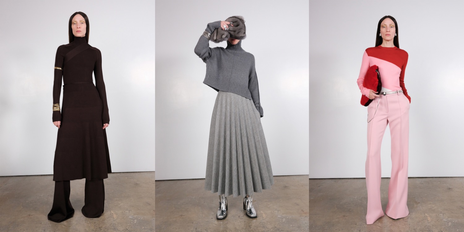Peter Do is the “old Céline” guard, who developed his aesthetic and style under Phoebe Philo. Add a succesful Instagram performance and thoughtful visual communication, and it’s a label that immediately got on everybody’s lips. It’s Do’s second official season, and here’s what we’ve got: modern uniforms of exceptionally tailored pieces which are both functional and fashion-forward. The autumn-winter 2020 palette is a treat: gray, accented with rose, scarlet, and hunter green. The black, all-sequinned blazer and matching pleated skirt is a great alternative to eveningwear. The label also debuts with footwear, which is all about heavy, polished-leather boots with metallic elements. Some looks felt over-sophisticated, like the oddly sharp cuts of the jackets’ lapels, but when you put the clothes apart, those are some very, very good wardrobe essentials.