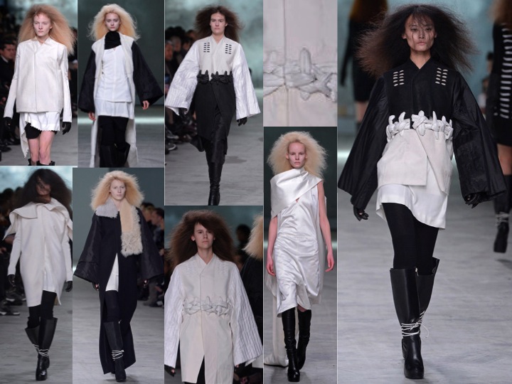 There is a new fight between two trends in Paris! Simple or Kitsch? Strong colours or beige and creme? Flowers, jewels, some kind of LOVE signs or shirling and leather? In this post I will cover four collections- Lanvin and Balmain that are classified as kitsch and Rick Owens and Nina Ricci as neutral and simple. So lets start maybe with something calm for eye, Nina Ricci. Katia and Marielle Labèque performed “Two Movements for Two Pianos” by Philip Glass on side by side grand pianos in the middle of a huge runway covered with old red carpets, giving a romantic feeling. Indeed, the collection was as romantic as the music that these two artists produced!The collection was a bit sporty but still very elegant. Everything was kept in simple colours hat are still eye caching- red, white, beige and black! My favourite look was for sure the dress with a bustier with mink fur on the top that gave a slightly different look!Now it’s the time for other collection are pretty liked, and was very simple in lines and cuts, Rick Owens. These hilarious hairstyles the models had were so great! I think that Owens is always winning with other designers, with we are taliking about hairstyles. Rick used a lot of creme and white shirling fur on jackets and coats. There were some minimalistic column like silk dresses, ruffles on tops, leather gloves. But it wasn’t, you know, much of it. Rick Owens showed this season a sensitive beauty of ready-to-weat clothes!And now it’s the time for kitsch in Paris. I think, Alber Elbaz was sick at the moment of designing the collection. Everything was so not matching. Without a form. A fail! Why did the Lanvin designer, put these horrible necklaces with hearts and pearls with a horrible signs like “YOU” or “LOVE” or something else? How is it possible to spoil a nice long silk beige dress with some kind of a furry scarf and jewellry that looked like from a petrol station? Why? It wasn’t even luxury. It was passe. Sorry Alber Elbaz, but that was a very poor collection. P.S. What the hell did these bugs were doing on a ruffled top?(This post is going to end soon :D) Balmain with Olivier Rousteing did a good job. Let’s say it straight- Balmain can’t be easy and minimalistic. It should be always luxury, ornamental and kitsch! This time Olivier chose new colours like emerals, red and violet. Most of clothes were velvet and had a really decorated details. I really liked all the structured tops and skirts. I liked the green suede jacket that M. Frackowiak wore. And the big belts were really eye catching! It was altogether sexy and sophisticated, just as it should be at Balmain! I’m clapping! So after these four collections I should say that I loved Nina Ricci and Balmain. Rick Owens was good, but a bit classy (for Rick of course) and Lanvin was horrible… So there is 2-2 for both of these categories! As we know from New York, Milan and london, luxury and ornamental clothing is back for good, but a little bit of minimalism is always the best!