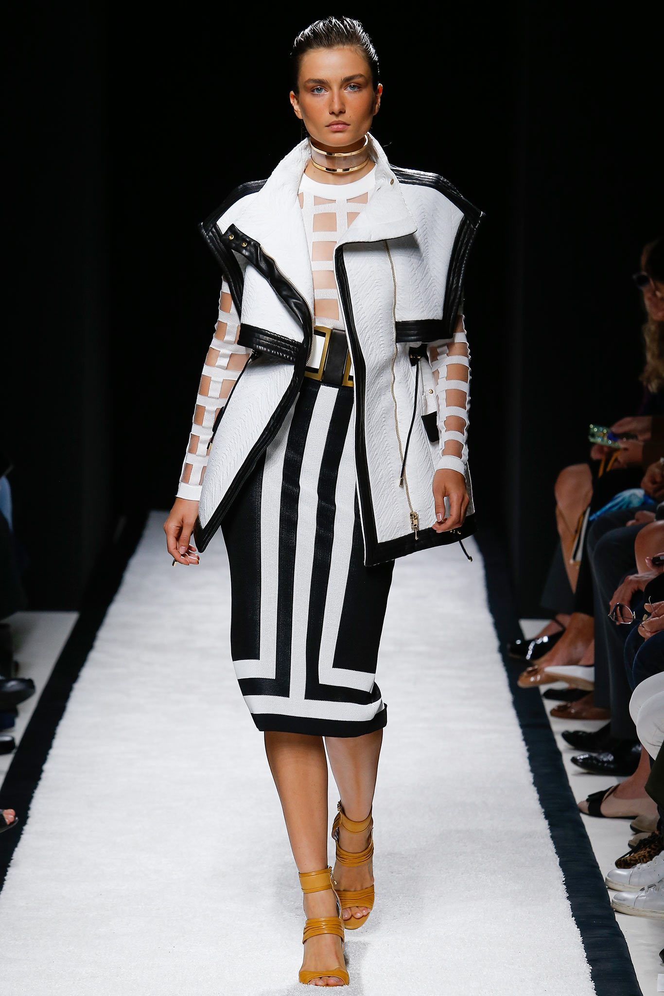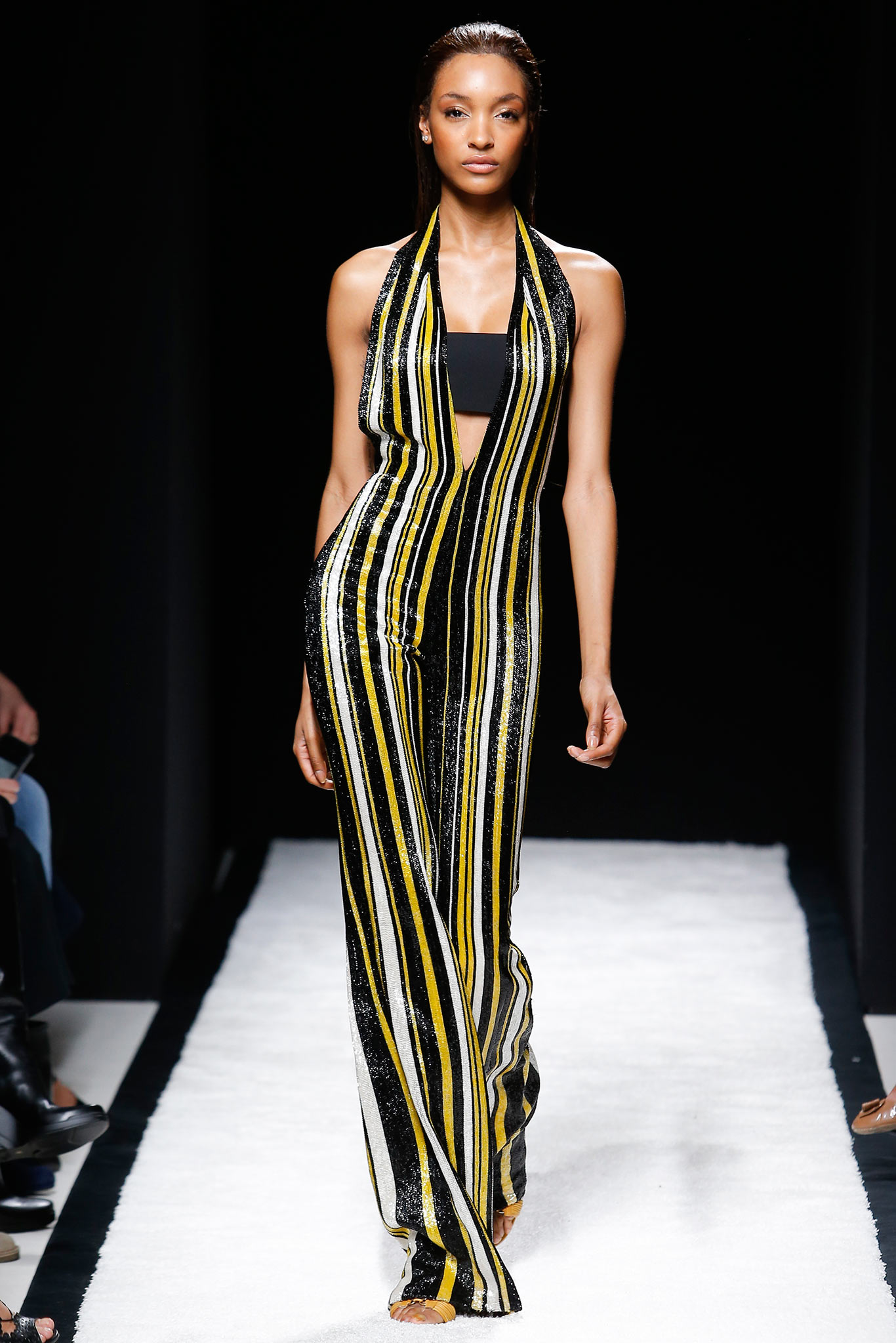 Mondrian-ish prints. Freeing the nipple. Parisian glamour. Sexy. Olivier Rousteing of Balmain showed a chic and brave collection, making the models look ultra attactive and provocative (if you may say, anything is still provocative in today’s fashion). For a show that was about “pushing the boundaries of sex,” as Rousteing bluntly put it, it didn’t always mean sexy with safe use. The issue, in most cases, was the fabric. As eye-catching as allover crystals can be, they’re hard to slink in—harder still, we imagine, to sit down in. The collection felt not really looking into the future woman, but into the past, where showgirls had their time to shine. However, the sheer tops with bold stripes looked good, but surely not real.