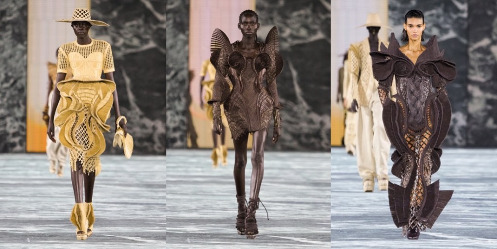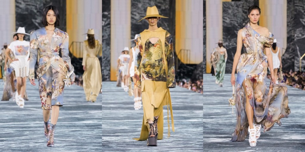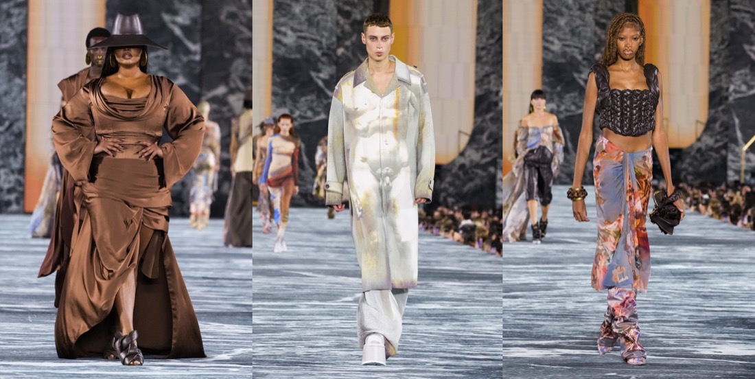 I might not be a Balmain kind of person, but I can definitely appreciate it, when Olivier Rousteing does something intriguing with it. A lot happened on the spring-summer 2023 runway, from a haute couture capsule offering to Cher closing the event. Over-saturated with prints featuring (very naked) Renaissance painting and a heavy dose of leather weaving and jersey draping, it was clear that Rousteing was still high on his Jean Paul Gaultier collaboration we’ve seen this summer (by the way, I can’t wait to see what Haider Ackermann will cook up for the brand in a couple of months!). But what truly sparked my attention in this Balmain outing was the melancholic, even dystopian mood behind it – and also it’s sustainability aspect. “We all saw climate change this summer. We all saw fires around the world. And coming back with a show in September, thinking about whether our pants are going to be high-waisted or low-waisted – it seems a bit futile to me.” Dressed like a samurai messiah, Rousteing told the press backstage that while he could not claim this collection was 100 per cent sustainable, he’d used fabrics made of paper, of banana, and of wicker (in the couture) to be as much so as possible. He added: “I have friends who tell me they don’t want to have kids, because what will our world be tomorrow? And at the end of the day it’s not about taste. It’s not about aesthetics.” When faced with the hardest proposition – that all fashion is essentially unsustainable for its inherent ephemerality – he convincingly riposted that his ongoing project is to radicalize his supply chain for the better. So props to him.