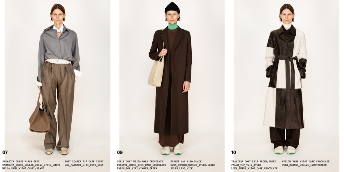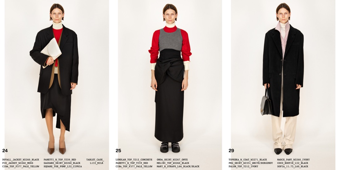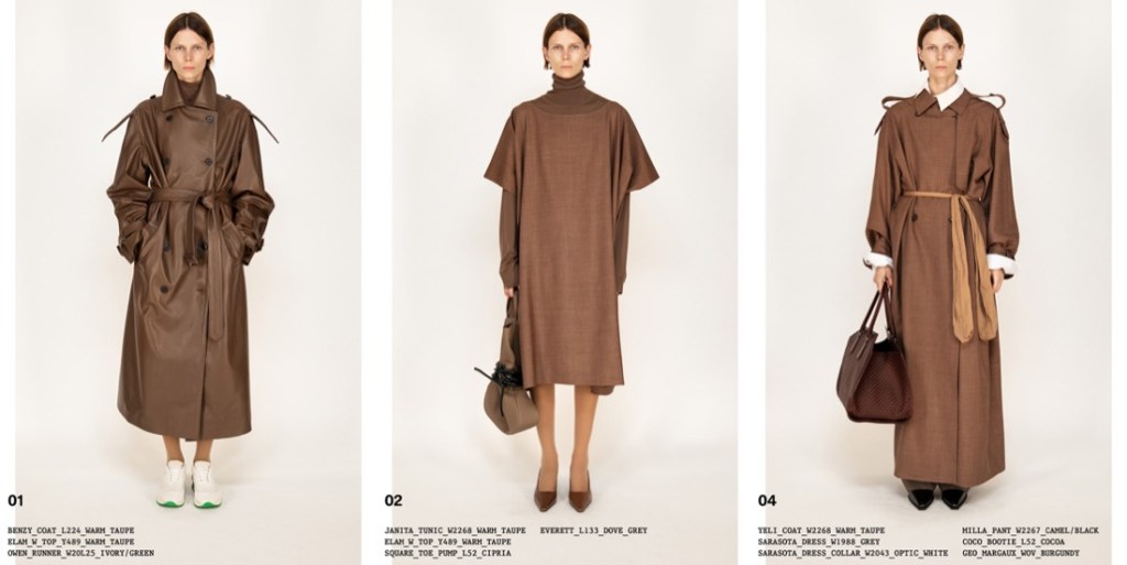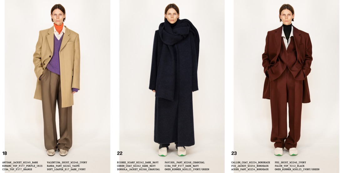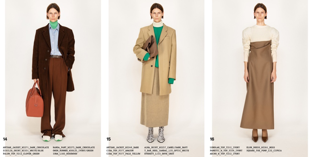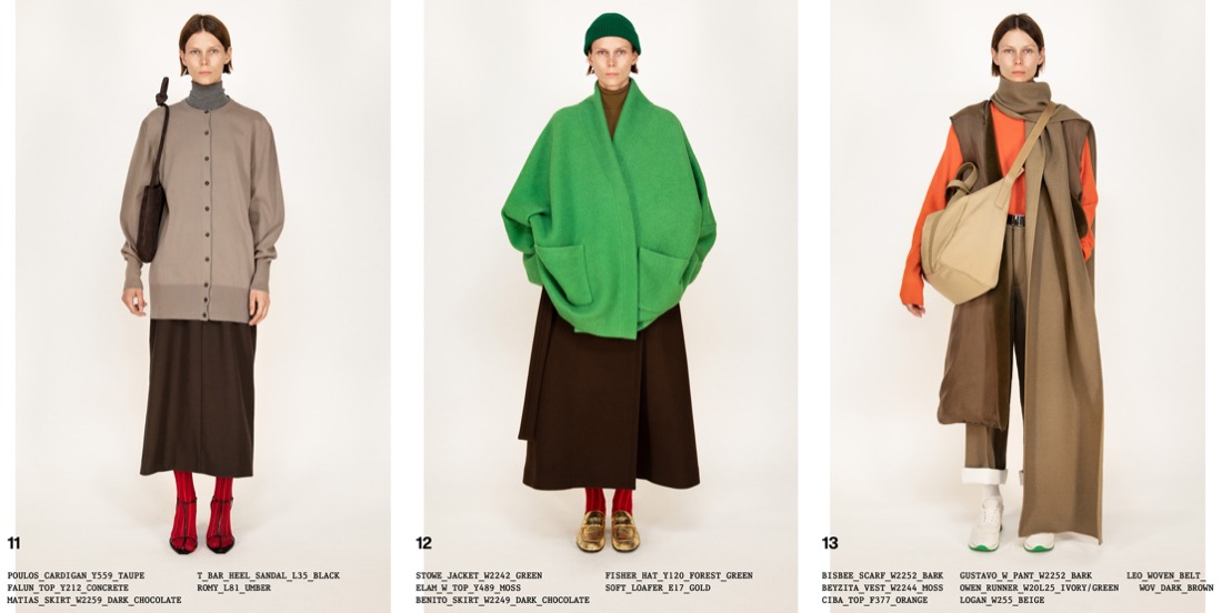 The latest The Row collection is so, so good. Even with office life curtailed and many industries extending their work-from-home policies well into the new year, the Olsen sisters are loyal to their impeccable tailoring. This season’s proportions are vaguely mannish: oversized and boxy or cut with a slouch, an attitude that’s accentuated by the sneakers that they pair with everything from a belted leather trench to a three-piece pantsuit. The big novelty this season is Ashley and Mary-Kate Olsen‘s palette – the offering is awash with color. The look book opens with just a peek – their new trainers are green on the bottom – but come the end, that green turns up on a cardigan jacket and fine-gauge sweaters, and it mingles with equally vibrant shades of orange and purple. They use these brights like the minimalists they are, by avoiding prints and patterns in favor of big blocks of color, layering an orange turtleneck under a white button-down under a purple V-neck under a tan three-button coat, or assembling a long, lean silhouette from a gray ribbed tank on top of a red crewneck and white turtleneck, all of them paired with an ankle-length black skirt. There are also more muted shades of navy, bordeaux, and forest green, for clients not ready to embrace the more extroverted colors. A couple of other notable developments: picking up the gesture from their last collection that saw them swaddling a model’s head with a sweater, they twisted and wrapped fabric at the waist and hips and tossed extravagant scarves over the shoulders of coats, moves that added interest and personality to their looks. There was also a touch of embellishment: enamel discs decorate the hem of a duster coat, and a pair of skirts are naively tiled almost like a mosaic. But it’s colorful sportswear that is this collection’s key message: It’s the one that could make women rejigger their back-to-work wardrobes when offices finally reopen.