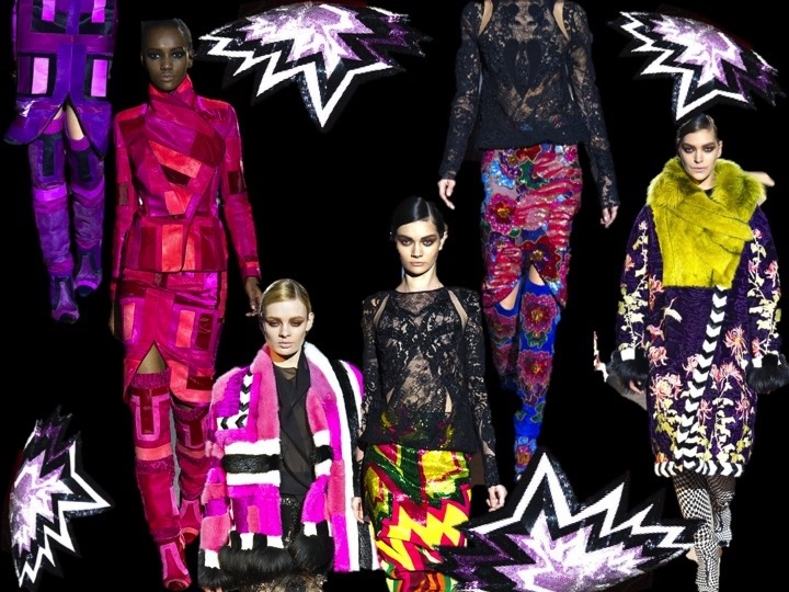 Ford was also inspired with Neons/pop art. Just look at the dresses and jackets! These Kapow patterns that are known from Roy Lichtenstein art are mind blowing. And what’s very Tom, is that he didn’t put these Kapow’s everywhere- no he used it in subtel, delicate amount, mostly on maxi gowns.