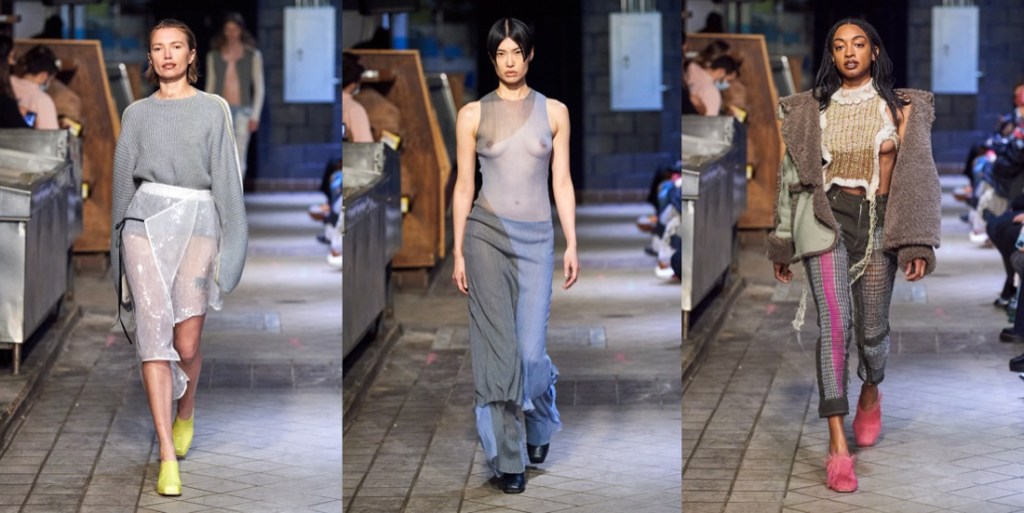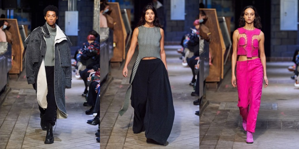 It’s another anniversary this New York Fashion Week: Eckhaus Latta celebrates its first 10 years. It’s not that easy to define this brand in one word – it’s raw and elusive, sexy and gender-fluid, over-sized, and then all of the sudden super clingy and sensual, spontaneous, kind of minimal, but not really noting all the arty handwork the brand loves to add to their collections. When Mike Eckhaus and Zoe Latta arrived in New York in 2012, their label was immediately deemed “crafty” and “indie”. After a decade in business (the irony: many people still consider the brand as “emerging”), Eckhaus Latta is one of New York’s strongest standing independent labels, with two brick-and-mortar stores, an e-commerce business, and admirers from all over the world. Its anniversary show at the former Essex Market affirmed that after a decade of independence, Mike Eckhaus and Zoe Latta are still charting their own course in fashion. The autumn-winter 2022 show was filled with Eckhaus Latta signatures. Sheer, glittery knits were slashed open at the back; minidresses were cut on a square edge; and tailoring was slit to reveal a spine, a thigh, or a breast. Worn by the brand’s friends and collaborators, including David Moses, Hari Nef, Maryam Nassir Zadeh, Thistle Brown, and Paloma Elsesser, the collection was a summation of everything Eckhaus Latta has built. It was cool, unfussy ready-to-wear with undertones of kink, craft, and community. It still is all these things, without ever labeling itself. “We didn’t want to be nostalgic or retrospective,” said Eckhaus postshow. “But we did want to bring back the things that we loved from our early collections, the handwork especially,” added Latta. The chain-mail pieces that closed the show, graphically sliced up to be equal parts erotic and acerbic, were handmade in the brand’s atelier. It was well balanced with the label’s more affordable garments. May Eckhaus Latta’s next 10 years be about furthering the bond between its tender handwork and commercial hits.
