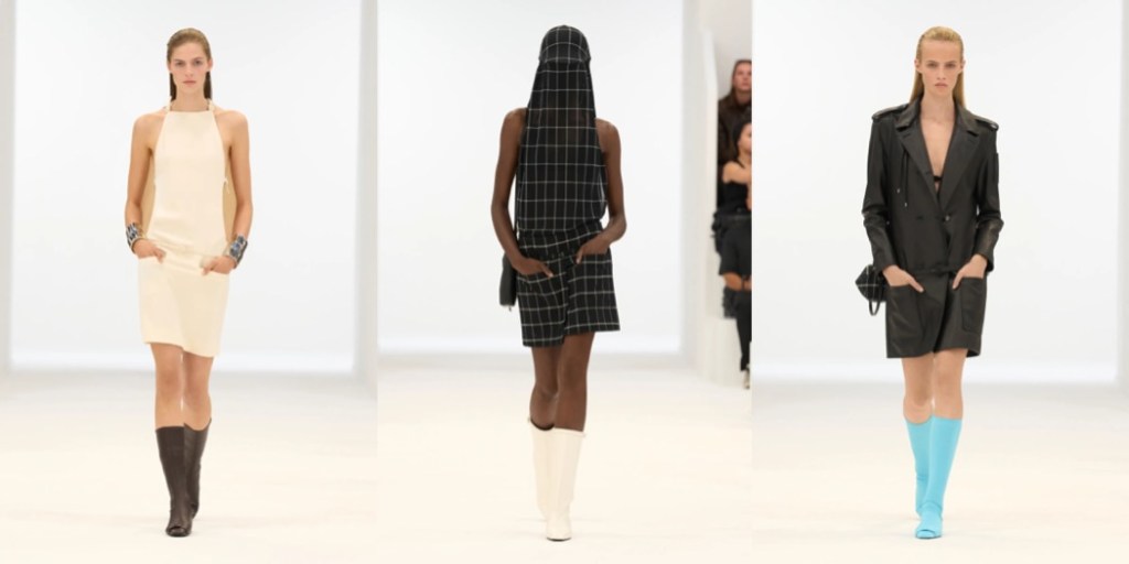 In between the ’80s-heavy color-block coat-dresses of the winter collection and the couture-inspired maxi gowns crafted in technical nylon for summer, Anthony Vaccarello introduces a cool-looking, smooth transition: a Saint Laurent resort line-up that revolves around the idea of combining – or rather, clashing – a lace-trimmed slip dress with an oversized track top. High meets low. Boudoir meets athleisure. Paris meets Los Angeles. The collection’s radiant color palette – salmon pink, cherry red, emerald green, and electric blue – reads like a visual dose of vitamin C, one that makes you pray for autumn’s grayness to give instant way to spring.