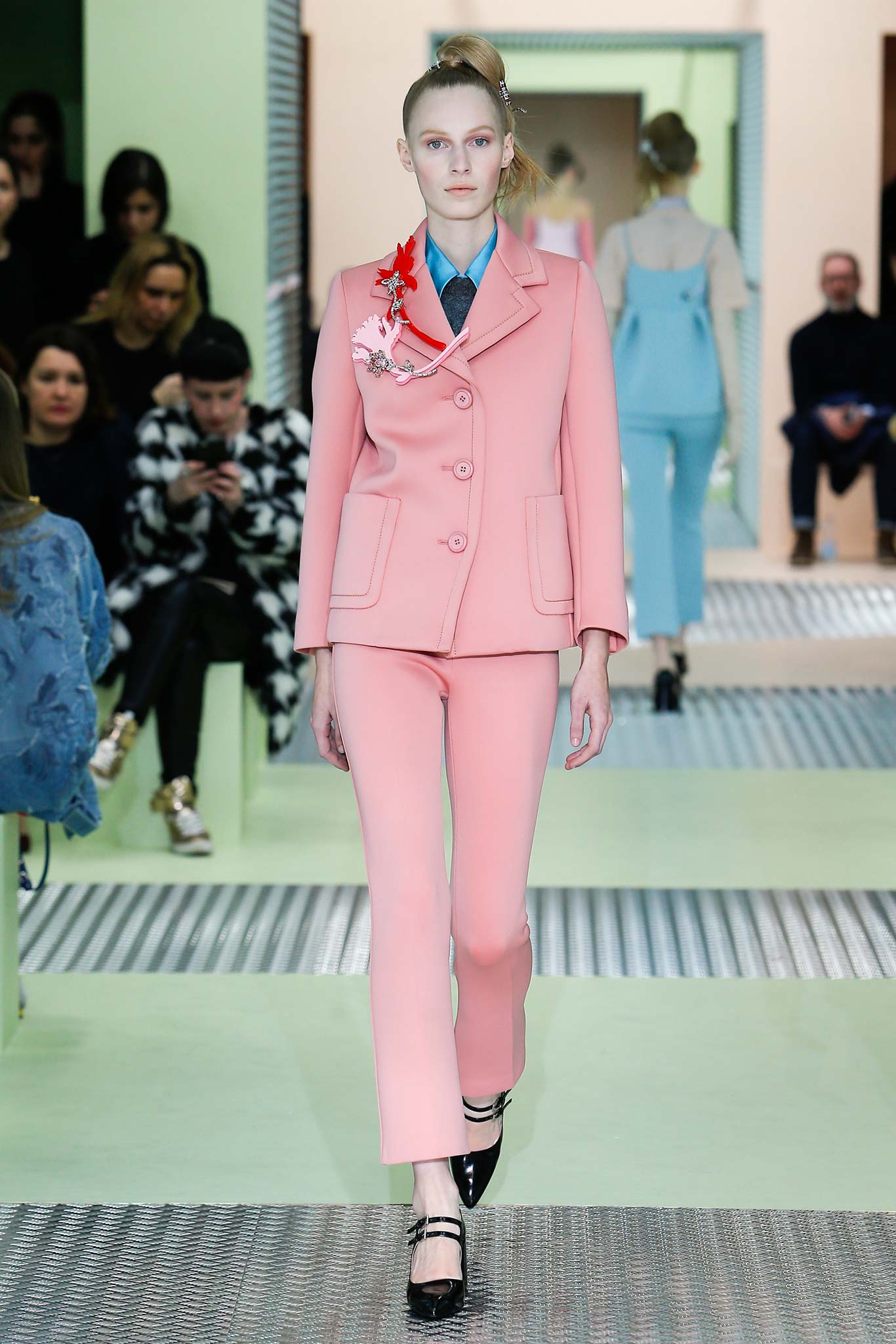 Not that I don’t like pastels – but it feels like it’s a current plague in fashion, even though Victoria Beckham‘s usage of baby pink and pistachio green was far above the average. Although the first hints of Beckham’s spring-summer 2018 collection said ‘pastels’ out loud, there was much more to it. Beckham is getting even more and more into ‘slouchy’, abandoning her body-con dress past. Fluid skirts and over-sized shirts; big blazers and big pants. The most striking look was the most sophisticated one and it involved wearing a pencil skirt under a transparent kilt. “Delicacy can be strong,” she said before the show to her press. According to Beckham, delicacy is something more complex than just plain pastels – it’s the softness of the texture and the comfortable, everyday fit.