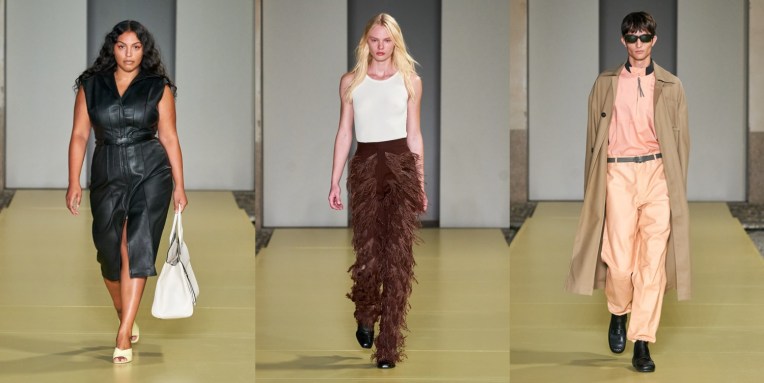 For autumn-winter 2021, Paul Andrew delivered the most unexpected collection for Salvatore Ferragamo. His vision for the brand was all about a formal-meets-casual wardrobe, kept luxurious and upscale. However, suiting mostly failed, and COVID just made it even less in demand. So it was a smart decision to stirr things in an attempt to catch the attention of a new customer. Andrew took Ferragamo to the outer space. “I believe that at Ferragamo we weren’t pushing boundaries enough, as the founder did,” said Andrew. “He was an incredible, forward-thinking force. This collection is an invitation to introduce the label to a younger audience. Embracing the mindset that Salvatore had is our key to the future.” The designer basically made a sci-fi movie – the video presenting the collection was an elaborate affair. A tour de force shot in virtual reality and CGI, loosely based on pre-millennial cult movie Gattaca, it had illuminated tunnels reminiscent of those trespassed by Uma Thurman; space ships coming past windows open onto a futuristic city; a circular rotating platform on which a glass prism refracted rays of light into a rainbow. “The rainbow is related to Ferragamo’s past, as Salvatore became famous for the rainbow wedges he created for Judy Garland,” explained the designer-turned-director. “And obviously the rainbow is a symbol of new positive beginnings.” Clothes-wise, Andrew proposed a play on classics seen through a technical, futuristic prism; elevated, slender uniforms were given a ‘younger’ vibe, lifted by a luminous, fluorescent color chart. He called some of the pieces ‘bionic’ – tight-fitting stretchy bodysuits and all-in-ones inspired by motorcycle suits – and had them layered under elongated, heat-processed, chrome-free-tanned leather coats; under pants or ponchos in clear biodegradable PVC; and complementing suit propositions in rubberized wool. Some of it looked great, some felt quite unedited, and some – out of place. The chainmail accents (kind of felt like Paco Rabanne landed in Florence?) and shaggy mohair fringing are exciting new additions, but I wonder if they really match a Ferragamo kind of person.