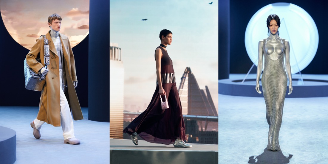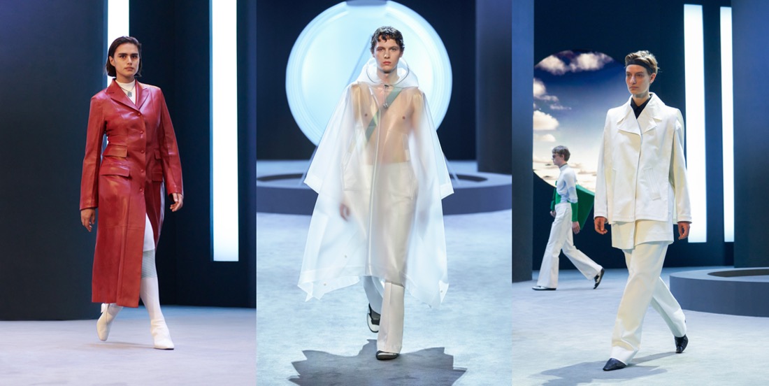 For autumn-winter 2021, Paul Andrew delivered the most unexpected collection for Salvatore Ferragamo. His vision for the brand was all about a formal-meets-casual wardrobe, kept luxurious and upscale. However, suiting mostly failed, and COVID just made it even less in demand. So it was a smart decision to stirr things in an attempt to catch the attention of a new customer. Andrew took Ferragamo to the outer space. “I believe that at Ferragamo we weren’t pushing boundaries enough, as the founder did,” said Andrew. “He was an incredible, forward-thinking force. This collection is an invitation to introduce the label to a younger audience. Embracing the mindset that Salvatore had is our key to the future.” The designer basically made a sci-fi movie – the video presenting the collection was an elaborate affair. A tour de force shot in virtual reality and CGI, loosely based on pre-millennial cult movie Gattaca, it had illuminated tunnels reminiscent of those trespassed by Uma Thurman; space ships coming past windows open onto a futuristic city; a circular rotating platform on which a glass prism refracted rays of light into a rainbow. “The rainbow is related to Ferragamo’s past, as Salvatore became famous for the rainbow wedges he created for Judy Garland,” explained the designer-turned-director. “And obviously the rainbow is a symbol of new positive beginnings.” Clothes-wise, Andrew proposed a play on classics seen through a technical, futuristic prism; elevated, slender uniforms were given a ‘younger’ vibe, lifted by a luminous, fluorescent color chart. He called some of the pieces ‘bionic’ – tight-fitting stretchy bodysuits and all-in-ones inspired by motorcycle suits – and had them layered under elongated, heat-processed, chrome-free-tanned leather coats; under pants or ponchos in clear biodegradable PVC; and complementing suit propositions in rubberized wool. Some of it looked great, some felt quite unedited, and some – out of place. The chainmail accents (kind of felt like Paco Rabanne landed in Florence?) and shaggy mohair fringing are exciting new additions, but I wonder if they really match a Ferragamo kind of person.