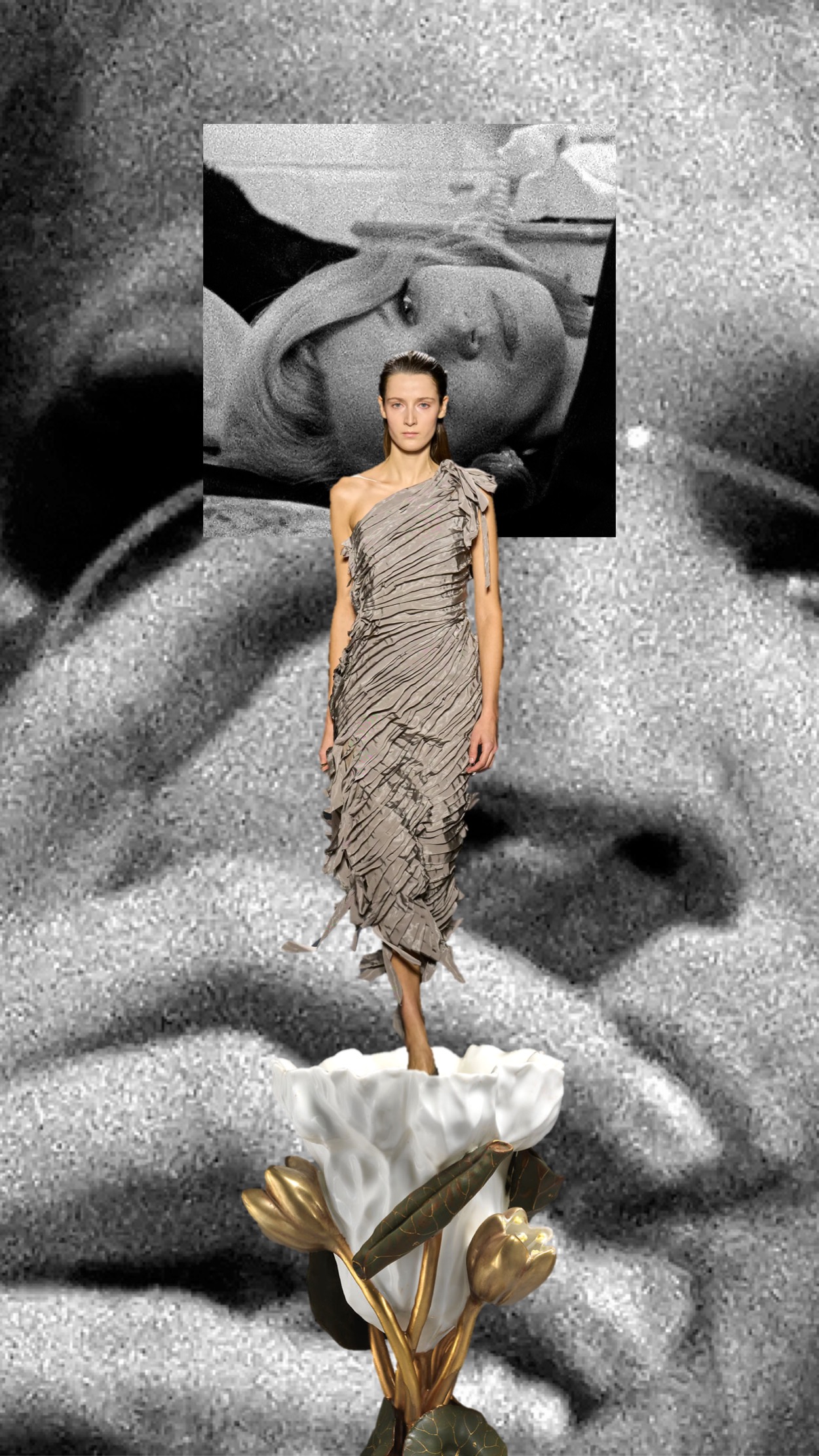 Not many people know that Venice holds a particular significance in the house’s chronicles. It was here that Jeanne traveled with her niece, Marianne, buying fabrics and visiting glass workshops. Archival photographs show Madame Lanvin in a white jacket and a black skirt falling just below the knee – a silhouette she favored whenever she visited the city on the water. That ensemble found its way into Copping’s pre-collection, looking contemporary and desirable.
