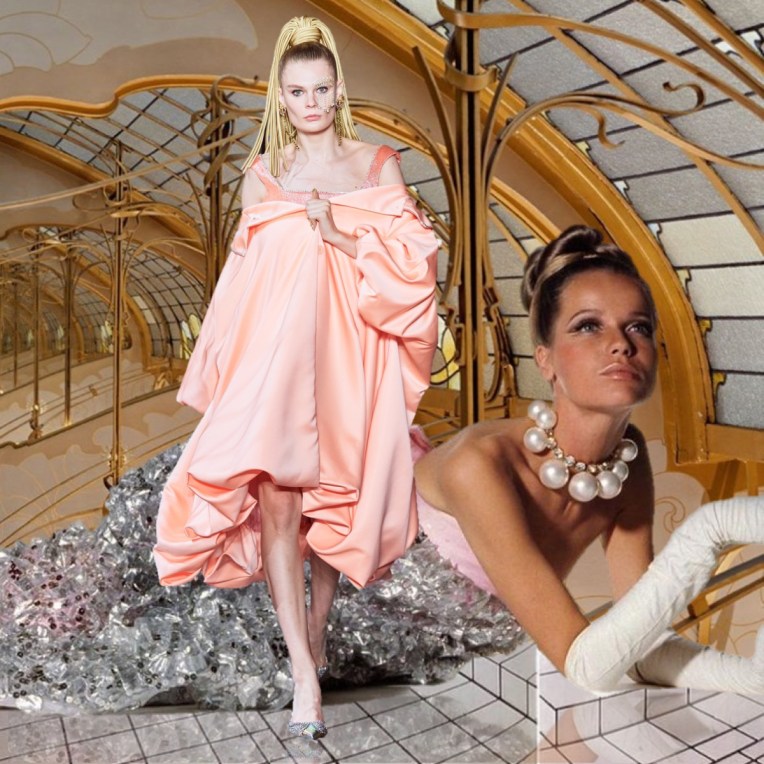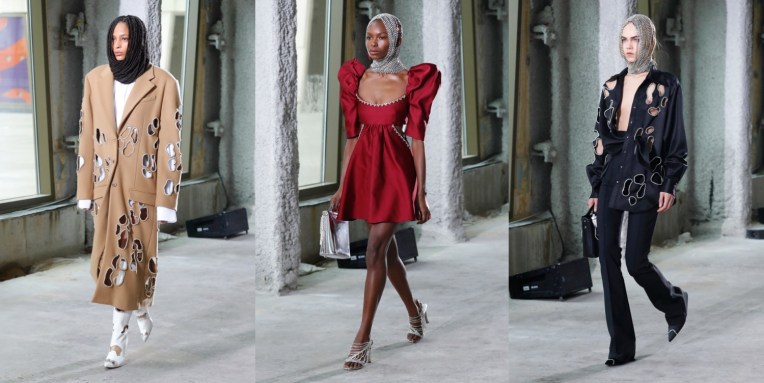 You really couldn’t wish for a better ending of an incredible (digital) haute couture week. Saying that this was Area‘s debut couture collection is quite a false statement, since each collection coming from New York-based Piotrek Panszczyk and Beckett Fogg is a couture-level fantasy. The designers ditched the spring-summer 2021 ready-to-wear schedule, making a bold power move not only for themselves, but for American fashion (same can be said of Schiaparelli’s Daniel Roseberry!). Area’s bold 14-look couture collection showcases their range of talent (think showgirl crystals and outlandish silhouettes combined with technically ambitious tailoring), and their lookbook, which stars Precious Lee and Yasmin Wijnaldum, is a sort of statement of intent. This is most certainly not old-world couture, with its strictly sample size casting. “Difference for us is a positive thing,” Fogg told Vogue. Lee opens the lookbook in a black smoking, featuring extravagant metalwork trimming the cuffs. The designers, who are catholic in their references, said they were looking at the coin embroideries of Berber peoples for the jacket’s embellishments, as well as for a pair of delicate and quite dreamy dresses made from thousands of individually hand-finished circles of organza. The rib cage pieces, embroidered with Swarovski crystals in India and assembled in New York, look destined for the Grammys or concert stages, once IRL events ramp back up again. Cake dresses whose tiers are fashioned from duchesse satin fully panniered in tulle do take their cues, Panszczyk said, from the couture of Emanuel Ungaro, Yves Saint Laurent and Cristobal Balenciaga, but the Area designers constructed them so they are open on one side. Wijnaldum flashes skin from her shoulders to the crystal-encrusted tops of the black leather platform clogs that Area will be selling with their third ready-to-wear drop later this year. This couture season has shown us that some of the designers are ready to challenge the system and are capable of reflecting the times we are living in. But seeing the new generation taking couture to new dimensions and redefining it is what I’m looking forward to the most!