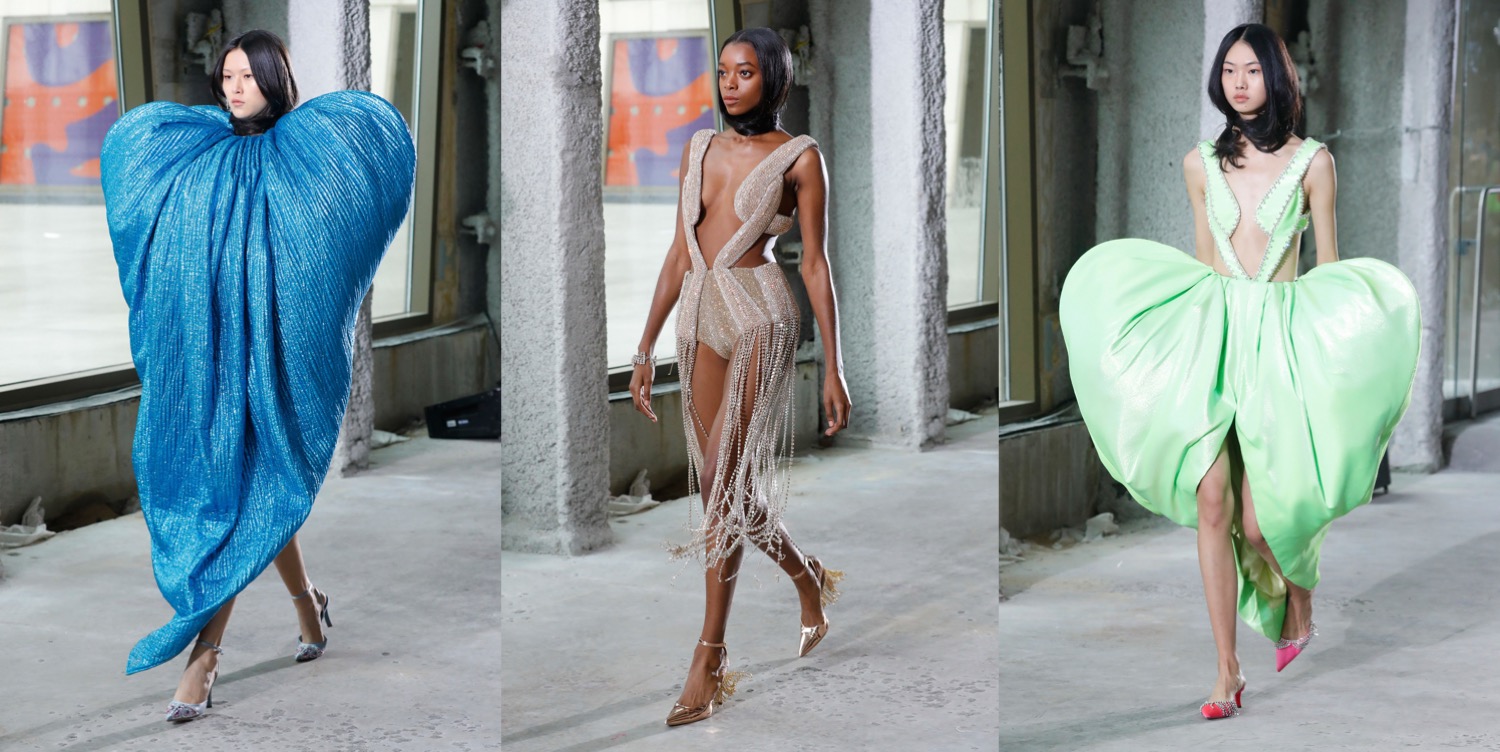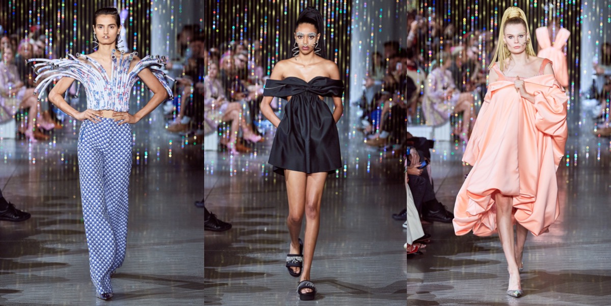 You really couldn’t wish for a better ending of an incredible (digital) haute couture week. Saying that this was Area‘s debut couture collection is quite a false statement, since each collection coming from New York-based Piotrek Panszczyk and Beckett Fogg is a couture-level fantasy. The designers ditched the spring-summer 2021 ready-to-wear schedule, making a bold power move not only for themselves, but for American fashion (same can be said of Schiaparelli’s Daniel Roseberry!). Area’s bold 14-look couture collection showcases their range of talent (think showgirl crystals and outlandish silhouettes combined with technically ambitious tailoring), and their lookbook, which stars Precious Lee and Yasmin Wijnaldum, is a sort of statement of intent. This is most certainly not old-world couture, with its strictly sample size casting. “Difference for us is a positive thing,” Fogg told Vogue. Lee opens the lookbook in a black smoking, featuring extravagant metalwork trimming the cuffs. The designers, who are catholic in their references, said they were looking at the coin embroideries of Berber peoples for the jacket’s embellishments, as well as for a pair of delicate and quite dreamy dresses made from thousands of individually hand-finished circles of organza. The rib cage pieces, embroidered with Swarovski crystals in India and assembled in New York, look destined for the Grammys or concert stages, once IRL events ramp back up again. Cake dresses whose tiers are fashioned from duchesse satin fully panniered in tulle do take their cues, Panszczyk said, from the couture of Emanuel Ungaro, Yves Saint Laurent and Cristobal Balenciaga, but the Area designers constructed them so they are open on one side. Wijnaldum flashes skin from her shoulders to the crystal-encrusted tops of the black leather platform clogs that Area will be selling with their third ready-to-wear drop later this year. This couture season has shown us that some of the designers are ready to challenge the system and are capable of reflecting the times we are living in. But seeing the new generation taking couture to new dimensions and redefining it is what I’m looking forward to the most!