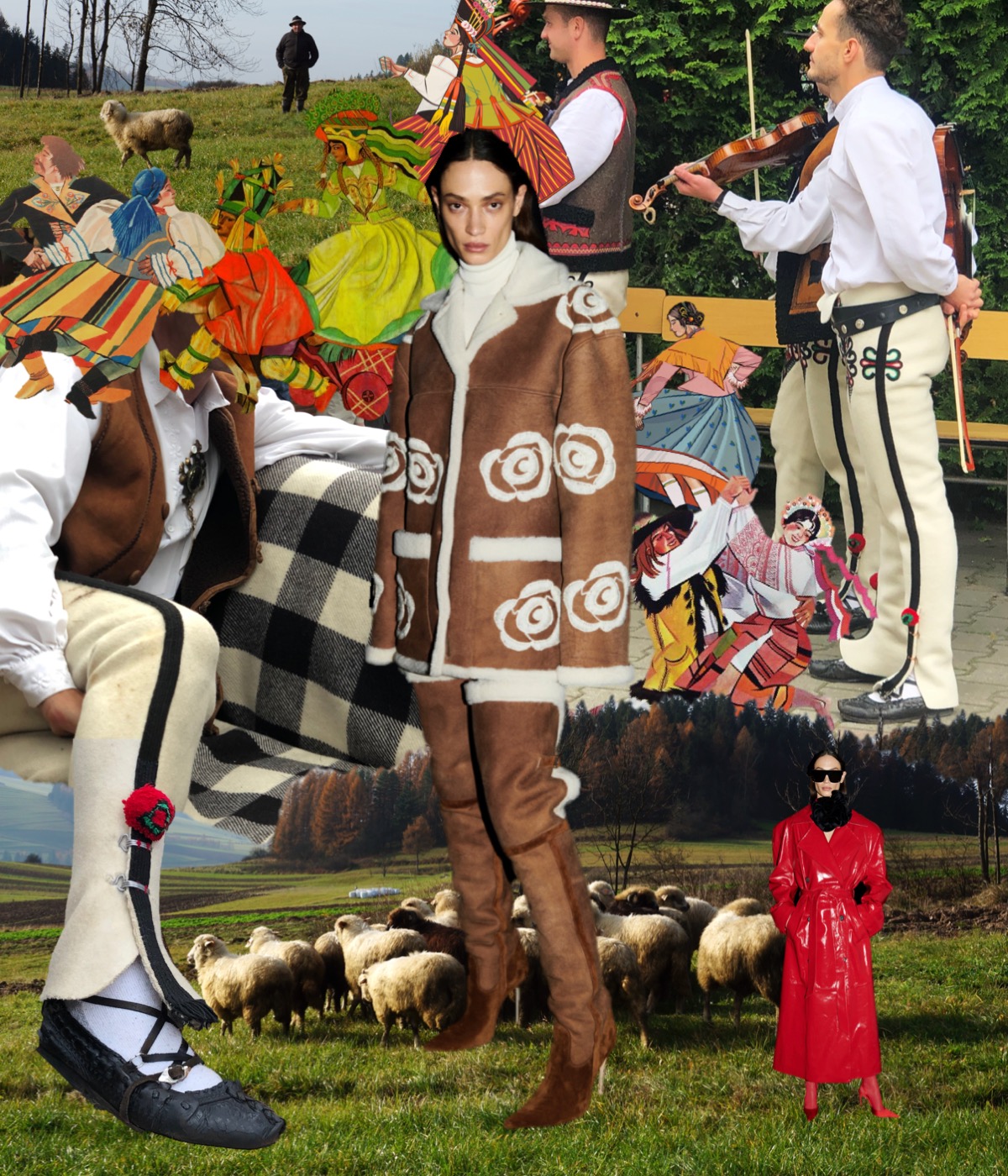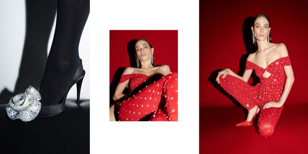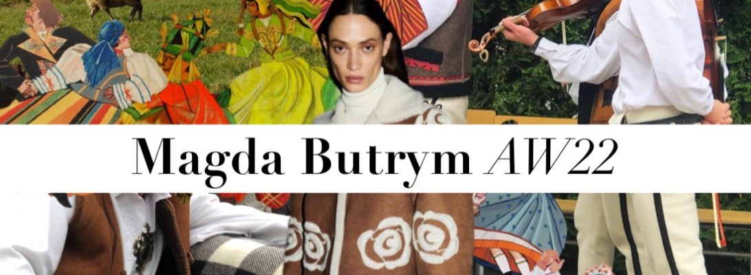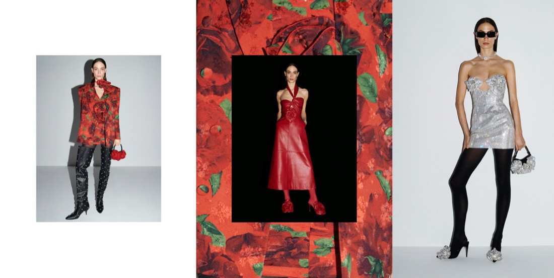 For autumn-winter 2022, Magda Butrym delivered a collection that balances her signature, chic finesse with a few delightful nods to her Polish roots. Those references definitely include the cultural legacy of early 20th century Zakopane, where artists created a new aesthetical identity inspired by the regional art of Poland’s highland region known as Podhale. In this “Love Letter” – the collection’s title – Butrym reinterprets the timeless shearling jacket by adding flower-shaped intarsia cut-outs, while the bold red rose print makes me think of Zofia Stryjeńska‘s vibrant depictions of women dressed in traditional highland folklore. Of course, nothing is too literal about this collection, and the knitted cream ensemble with a balaclava hoodie will work both on the slopes of Tatry and Megève. This season, the designer debuts luxe, commanding coats in red patent leather and pink, extra-fluffy jackets, as well as handcrafted details seen in the crochet dress and floral-appliqué mini. Feminine, edgy, distinctly cool and full of bling, Butrym’s eveningwear pieces are unlike anything else. Find them alongside her all-time must-haves – from bustiers with rounded cups to 3D rosettes, and a gray cashmere update to her best-selling long, boxy coat.